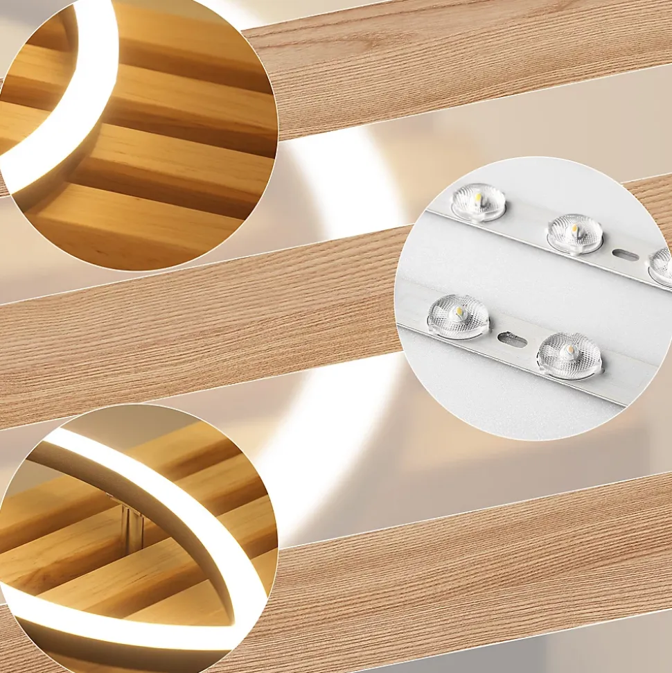 Design géométrique simple : ce luminaire de salon led moderne est composé d’une base en bois et d’une base en fer noir. Des matériaux de haute qualité et durables garantissent longévité et durabilité.Plafonnier basse consommation : le plafonnier en bois gbly a une puissance de 36 w et un diamètre de lampe de 55 cm. Il diffuse une lumière ultra-lumineuse et couvre une surface de 15 à 30 m2. Comparé aux lampes classiques, il vous permet d’économiser plus de 90 % sur vos factures d’énergie.Variation d’intensité : le plafonnier de chambre gbly est télécommandé. La température de couleur est réglable entre 3 000 k et 6 500 k. La luminosité est réglable entre 10 % et 100 %, vous permettant d’ajuster la lumière selon vos besoins. La fonction mémoire enregistre les réglages effectués depuis la dernière extinction.Agréable pour les yeux, sans scintillement : ce plafonnier led moderne en bois est résistant aux interférences haute fréquence. Grâce à l’abat-jour en matériau de haute qualité, la lumière est vive et uniforme, sans scintillement ni éblouissement. L’indice de rendu des couleurs du plafonnier led est supérieur à 80, offrant une reproduction claire et éclatante des couleurs.
