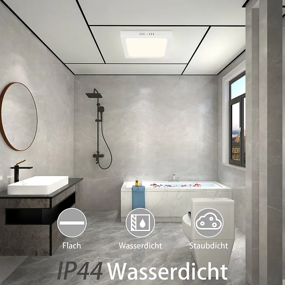 Plafonnier LED moderne, blanc, 23CM, IP44, 18W, 1 ampoule incluse, garantie 2 ans.