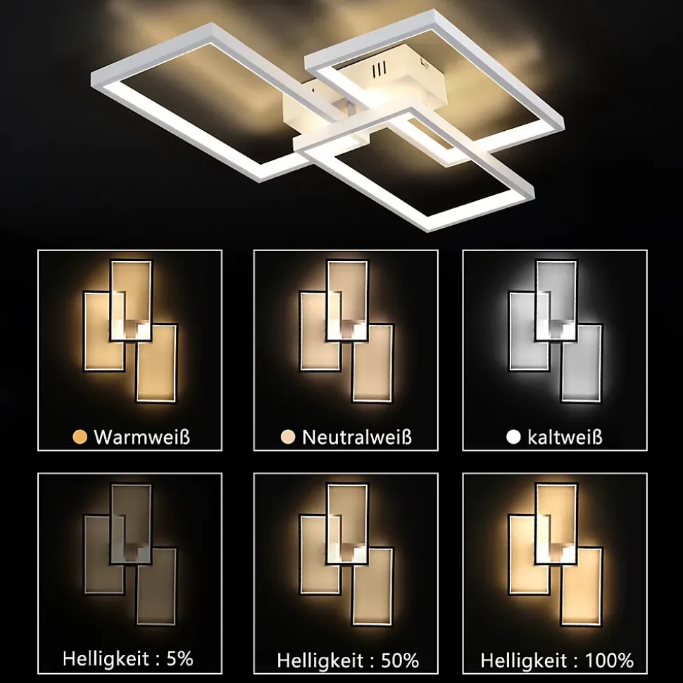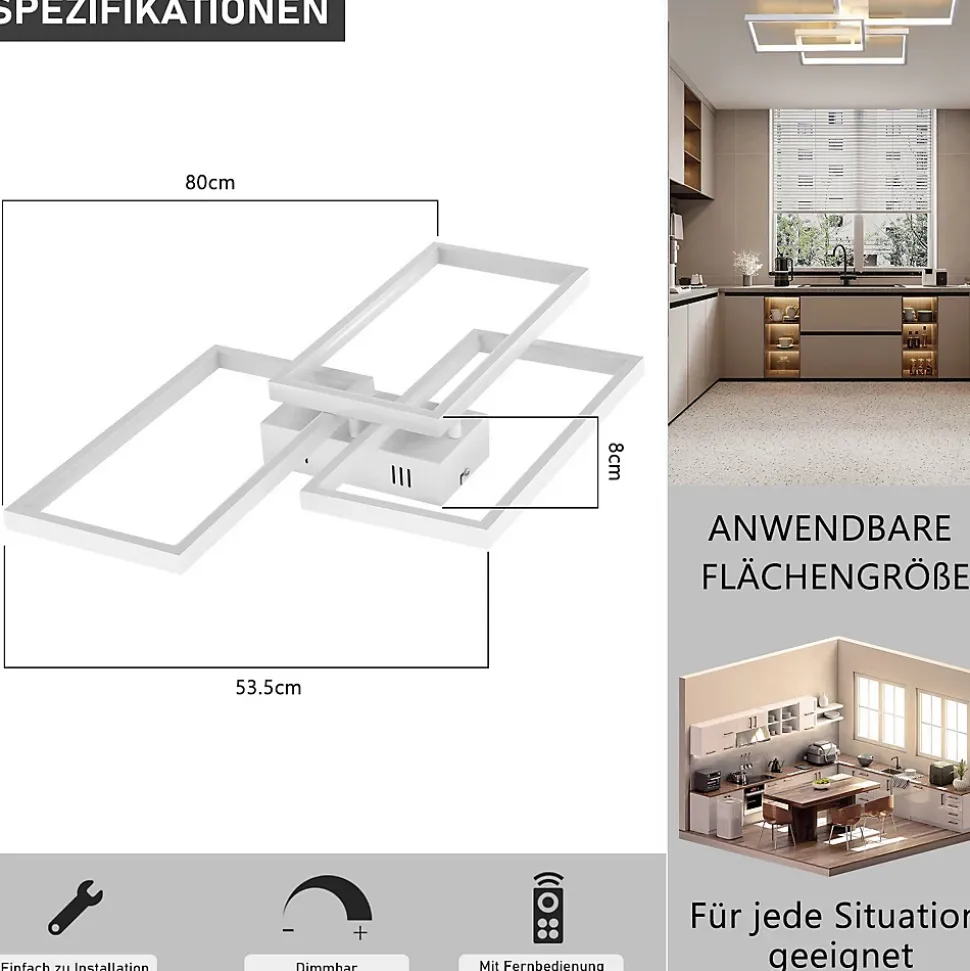 Découvrez le plafonnier LED moderne Whonzimmer, une solution d’éclairage élégante et fonctionnelle pour toutes les pièces de votre maison. Avec son design contemporain en métal et gel de silice, ce plafonnier s’intègre parfaitement dans votre salle à manger, cuisine, salon, chambre ou bureau. Sa télécommande incluse vous permet de régler facilement la luminosité et la température de couleur entre blanc chaud, blanc froid et neutre, offrant une ambiance personnalisable pour chaque occasion.Mesurant 800 mm de long, 535 mm de large et 85 mm de haut, il est conçu pour un montage direct au plafond, garantissant une installation simple et rapide. Avec une puissance de 72W, il diffuse une lumière agréable et claire qui embellit votre espace de vie. Ce plafonnier est non seulement esthétique mais aussi pratique, avec une ampoule LED fixe incluse et une garantie de 2 ans pour assurer votre tranquillité d’esprit.Faites confiance à ZMH Lichtstein GmbH pour un éclairage de qualité supérieure et un service client exceptionnel. Si vous avez des questions ou des préoccupations, notre équipe est toujours à votre disposition pour vous aider. Transformez votre intérieur avec le plafonnier LED Whonzimmer aujourd’hui!