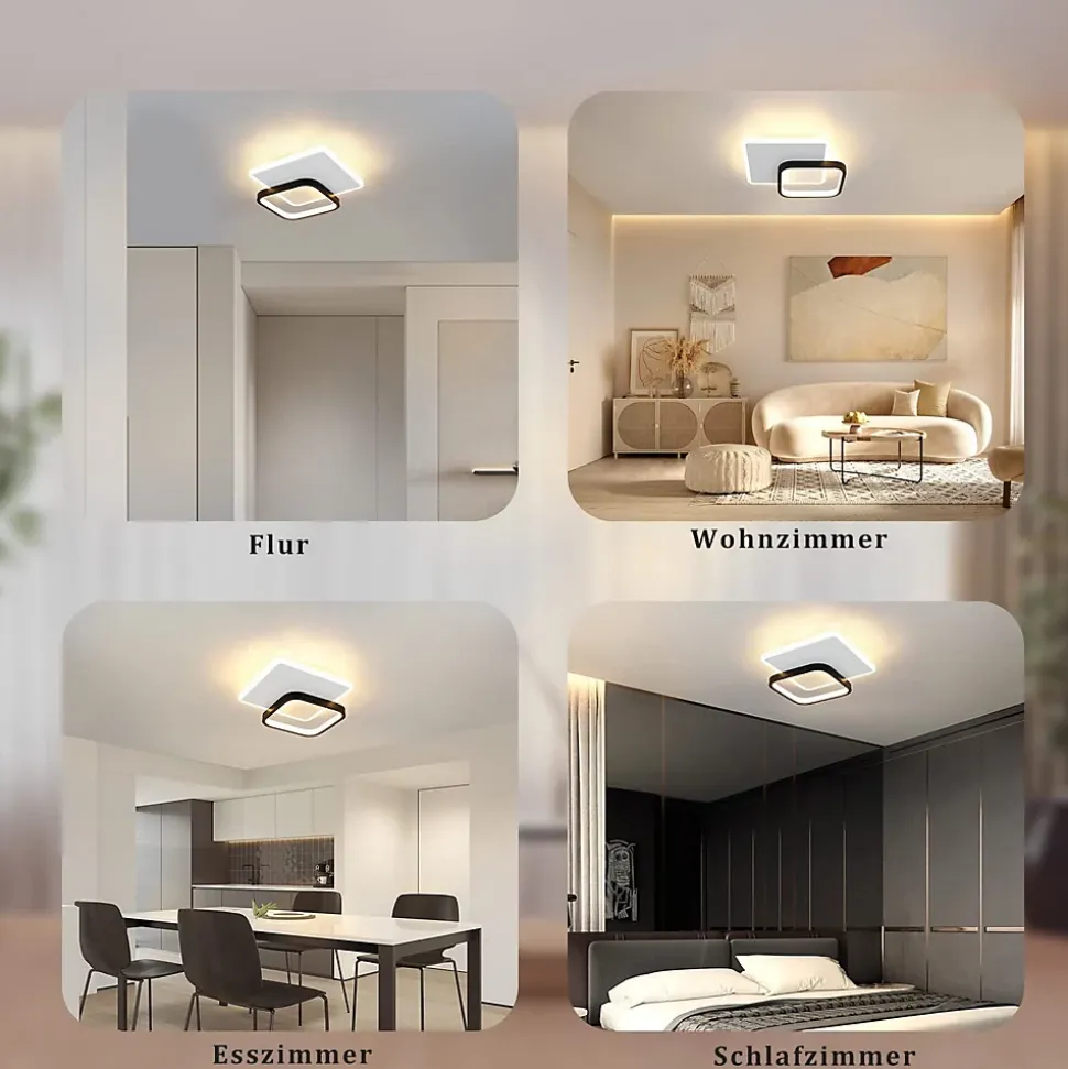Design minimaliste : le plafonnier led moderne a une forme géométrique, le plafonnier est composé de deux formes de tailles différentes avec un design simple et généreux et un aspect petit et compact. La lumière chaude de 3000k crée une atmosphère minimaliste et confortable.matériaux : le plafonnier est fabriqué en acrylique et en métal de haute qualité, l’abat-jour est en acrylique avec une bonne transmission de la lumière, une lumière douce et chaude, une couleur uniforme et protège les yeux. La surface est peinte, avec une texture délicate et une belle atmosphère.spécification : taille : 24.5x6x24.5cm. Puissance : 15w. Lumens : 1200lm. Température de couleur : 3000k. Gradation : pas de gradation. Plage d’éclairage : 5-10m2. L’utilisation de la technologie led avancée permet d’économiser de l’énergie et constitue un bon choix pour la consommation d’électricité à la maison et au bureau.installation facile : les plafonniers à led n’ont pas besoin d’être montés, le câblage interne du corps lumineux est déjà terminé. Il vous suffit de brancher les fils et de les fixer au plafond. Pour plus d’informations, consultez le guide d’installation.plafonnier polyvalent : les plafonniers à led peuvent être utilisés dans le salon, la chambre à coucher, le couloir, les balcons, la cage d’escalier, le débarras, la cuisine, la chambre d’enfant, etc. Ils peuvent également être utilisés dans les espaces commerciaux et d’exposition tels que les restaurants et les galeries, les salles à manger, les bars et les cafés.