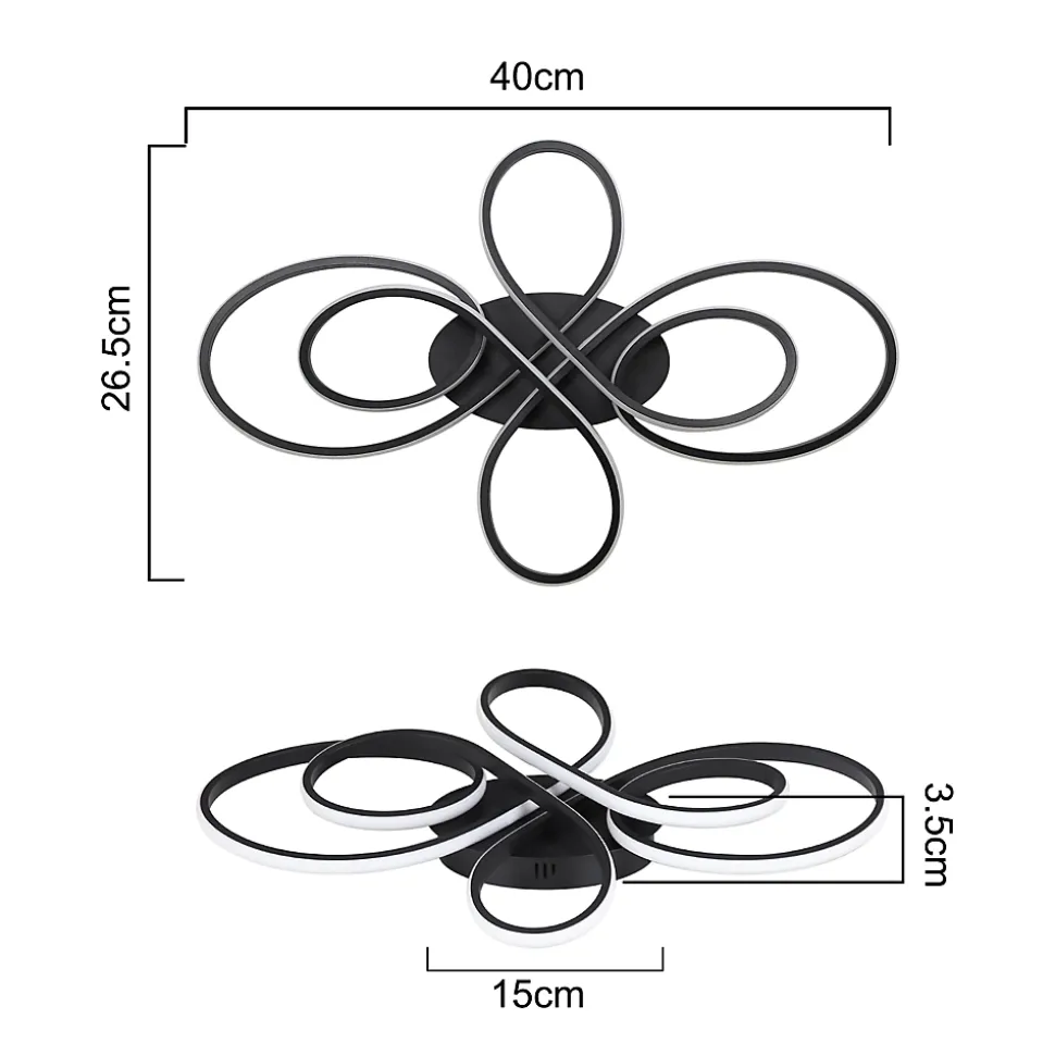 Design : ce plafonnier led moderne pour salon présente une forme de papillon symétrique, ce qui en fait un point focal visuel reconnaissable dans toute maison. Sa technologie de rendu des couleurs élevé (ra>80) reproduit fidèlement les couleurs et sublime les détails. De plus, il est sans scintillement, offrant un éclairage stable et doux.Matériau : ce plafonnier est fabriqué en aluminium et silicone de haute qualité, garantissant une structure légère et robuste ainsi qu’une bonne dissipation de la chaleur. L’aluminium rend le luminaire plus durable et facile d’entretien, tandis que la partie en silicone offre une bonne isolation et flexibilité, garantissant sécurité et longue durée de vie.Éclairage puissant et efficace : ce plafonnier au design moderne est équipé d’une source lumineuse unique de 30 watts, offrant une lumière vive et uniforme pour éclairer efficacement n’importe quelle pièce. Avec une température de couleur de 3000 k, il diffuse une lumière blanche chaude qui crée une atmosphère chaleureuse et agréable.Caractéristiques du produit : dimensions : 40 x 26,5 x 3,5 cm, puissance : 30 watts, température de couleur : 3000 k, intensité non variable. Équipé de led fixes et non remplaçables, ce plafonnier, grâce à sa technologie brevetée, offre un design unique et d’excellentes performances.