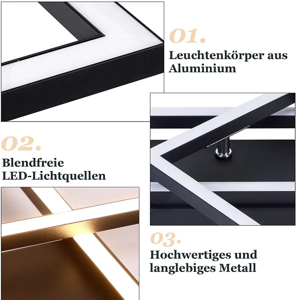 [design rotatif] ce plafonnier led se caractérise par un design géométrique composé de deux éléments d’éclairage carrés, un grand et un petit, qui se chevauchent pour créer un look moderne. Le petit élément d’éclairage carré peut en outre être orienté à 293°, ce qui vous permet d’adapter le look à vos préférences personnelles et d’offrir ainsi un éclairage plus agréable à votre pièce.[économie d’énergie et protection des yeux] le plafonnier moderne atteint jusqu’à 2100 lumens, ce qui le rend plus économe en énergie que les ampoules traditionnelles et lui confère une durée de vie allant jusqu’à 20.000 heures. Avec une source lumineuse led stable, non éblouissante et sans scintillement, le plafonnier peut protéger vos yeux et créer une atmosphère confortable dans votre chambre.[spécifications du produit] la taille du plafonnier noir est de 42*20*7cm, tension : 220-240v, puissance : 20w ; température de couleur : 3000k blanc chaud, non dimmable. Le corps du plafonnier est fabriqué en métal de haute qualité, haute transmission de la lumière, lumière douce.[large application] ce plafonnier led élégant et moderne est parfait pour une utilisation comme lampe de chambre à coucher, lampe de salon, lampe de cuisine. Convient pour une pièce de 5 à 15 mètres carrés comme le salon, la chambre à coucher, la salle à manger, la cuisine, la chambre d’enfant, le bureau et ainsi de suite.[installation facile] conception d’installation humanisée, il suffit de brancher le câble et de visser le plafonnier au plafond pour une installation facile. Si vous avez la moindre question, n’hésitez pas à nous contacter, nous résoudrons le problème le plus rapidement possible.: