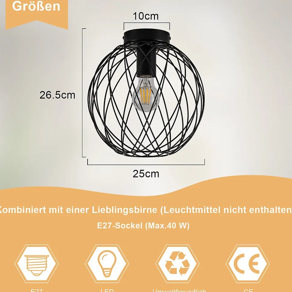 [haute qualité] ce plafonnier industriel est fabriqué en métal de haute qualité avec une surface peinte qui résiste à la corrosion, est robuste et durable et a une longue durée de vie. Le lampadaire zhezhan a été oxydé et sa couleur noire mate est classique et attrayante, simple et unique, ce qui en fait un bel ajout à votre maison.[point fort du design] cette lampe de plafond avec son design de panier métallique rond apporte une touche rétro-industrielle caractéristique à votre pièce. L’aspect élégant et rétrospectif de la lampe de chambre à coucher est encore renforcé par la finition mate, qui ajoute une touche chic à l’ensemble.[libre choix de la source lumineuse] compatible avec une douille e27. La lampe de salon est livrée sans source lumineuse, ce qui vous laisse la liberté de choisir le type de source lumineuse qui vous convient. Le plafonnier de la lampe de cuisine supporte une puissance allant jusqu’à 40 w, ce qui est parfait pour vos besoins personnels en éclairage.[polyvalent] ce plafonnier est idéal pour décorer une grande variété d’espaces, y compris les couloirs, les salons, les restaurants, les bureaux, les balcons, les cages d’escalier, les greniers, les cuisines, les chambres et les bars. Où que vous soyez, les plafonniers résidentiels créent une atmosphère unique.[facile à installer] le plafonnier industriel e27 a une structure simple et est encore plus facile à installer grâce aux instructions que nous fournissons. La tension de travail du plafonnier rustique est de 220-240 v, ce qui est courant dans la plupart des foyers. L’installation est rapide et permet d’économiser du travail (assurez-vous d’abord de couper l’alimentation électrique pendant l’installation).: