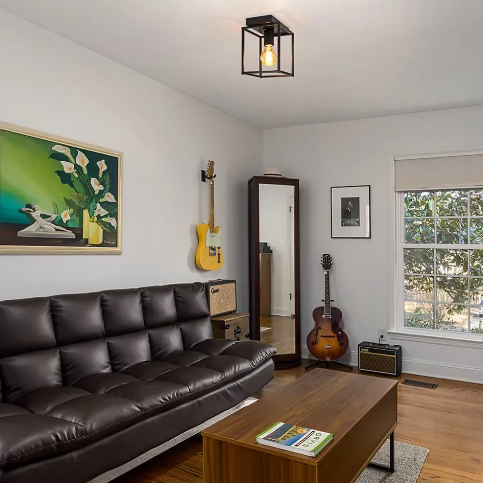 Plafonnier vintage : le plafonnier est équipé d’une douille e27 qui correspond à l’ampoule rétro. Visuellement, le plafonnier industriel combine un caractère industriel avec une note antique. Le design vintage minimaliste s’intègre visuellement dans tous les intérieurs avec des meubles modernes, un style industriel ou un flair vintage.détails techniques : lampe de plafond rétro dimensions du produit : env. 17 x 15 x 20 cm. Couleur : noir. Protection ip20. Matériau : métal. Style : industriel, vintage. tension : 230vdouille e27 : le plafonnier vintage offre une douille e27 et convient aux ampoules e27 normales (max. 40w). Nous recommandons des ampoules à incandescence claires ou des ampoules rustiques dorées pour compléter le look vintage. Ampoules non comprises.application : le look est stylé, vintage et facile à utiliser partout. Ces luminaires industriels peuvent être utilisés comme décoration pour une lampe de cuisine, une lampe de salon, une lampe de couloir, une lampe de table à manger, une lampe de chambre à coucher et ainsi de suite.