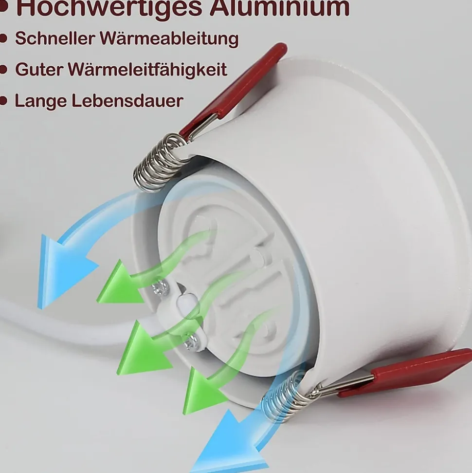 Produit : matériau : acrylique et aluminium. Couleur de la lumière : 4000k blanc neutre. Couleur : blanc. Profondeur de montage : 45mm.consommation électrique : 5w.flux lumineux : 200 lm.Luminaire résistant à l’humidité ip44 : le luminaire encastré à led avec indice de protection ip44 est un objet d’éclairage idéal pour les salles de bains et autres pièces humides, car il est entièrement protégé contre la poussière et les éclaboussures d’eau.Ampoules led : les led montées dans les spots fournissent un éclairage blanc neutre très agréable à 4000 k et une distribution lumineuse assez large.Facilité d’installation : grâce au dispositif de serrage rapide, le luminaire est très facile à raccorder et peut être installé sans outils.Scénario : le design rond avec sa surface blanche est particulièrement simple, de sorte que le spot encastré à led économe en énergie peut être utilisé presque partout.