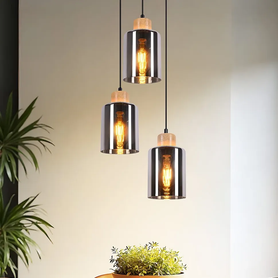 Éléments en verre et en bois pour un look de haute qualité : la suspension est en bois et en verre et possède un abat-jour gris fumé simple. La combinaison du verre et du bois confère à la lampe une élégance naturelle. Grâce aux matériaux robustes et à la fabrication de haute qualité, la lampe est durable et constitue donc l’investissement parfait pour votre maison. Flexibilité et adaptabilité : une particularité de cette lampe de salle à manger est sa conception réglable en hauteur. Cela signifie que vous pouvez régler la hauteur du lustre jusqu’à 120 cm selon vos besoins. Taille du plateau de couverture : 22*2,5 cm ; taille de l’abat-jour : 12*15 cm ; cela signifie que vous pouvez contrôler comment et où l’abat-jour est suspendu, quelle que soit la taille ou la disposition de la pièce. Lampe de table à manger décorative : cette lampe de table à manger a une tension de connexion de 230 volts et vous offre quatre ampoules d’une puissance maximale de 4 x 25 watts. La base des ampoules est e27, une lampe courante et facile à trouver. Attention : l’ampoule n’est pas incluse dans la livraison. Design vintage pour la salle à manger : la lampe suspendue est conçue dans un style rétro et industriel et deviendra un nouvel accroche-regard dans votre maison grâce à la combinaison de matériaux. Donnez à votre salle à manger une touche industrielle décorative avec la suspension de la série. Application : grâce à son look industriel, la suspension est non seulement superbe dans votre propre maison, mais s’intègre également tout aussi bien dans un café, un bar ou un restaurant, créant ainsi une atmosphère particulière. Que ce soit dans le salon, la salle à manger, la cuisine ou le couloir, cette suspension s’intègre partout. Il est particulièrement beau sur une table.