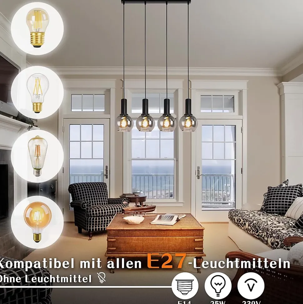 [design unique]la lampe suspendue est conçue avec du verre gris fumé, ce qui donne à la source lumineuse une présence particulière et la combine avec différents styles de meubles pour améliorer l’esthétique de la pièce. En même temps, le verre offre une bonne transmission de la lumière, tirant le meilleur parti de la lumière dans la pièce et améliorant les effets de lumière et d’ombre dans la pièce pour créer une atmosphère chaleureuse et nostalgique. [hauteur réglable] cette lampe de table à manger suspendue peut ajuster librement la longueur du câble avant et après l’installation, avec une longueur maximale de 120 cm. Cela vous permet d’ajuster facilement la hauteur de la lampe en fonction de vos besoins d’espace et de votre style de conception, d’optimiser la hauteur de suspension et de garantir qu’elle s’harmonise parfaitement avec l’apparence générale de la pièce pour répondre aux besoins d’éclairage de différentes scènes. [source de lumière remplaçable e27]l’ampoule de cette lampe suspendue est remplaçable, vous permettant de changer de manière flexible les sources lumineuses avec différentes douilles e27 pour répondre à vos besoins de bricolage et obtenir différents effets d’éclairage et intensités lumineuses. Qu’il s’agisse d’une lumière chaude, douce ou vive, elle constitue une source de lumière idéale pour votre pièce. De plus, la puissance de sortie maximale de la lampe est de 40 w et la tension d’entrée est de 230 v. [matériaux de haute qualité] cette lampe suspendue est fabriquée en verre de haute qualité, fabriqué à la main et offrant une bonne transmission de la lumière et une bonne durabilité. Il crée des effets de lumière et d’ombre doux et enchanteurs et donne à la pièce un style rétro-élégant. De plus, il est doté d’un cadre en métal robuste qui présente une structure stable et une capacité de charge élevée, ce qui le rend très sûr et fiable.: