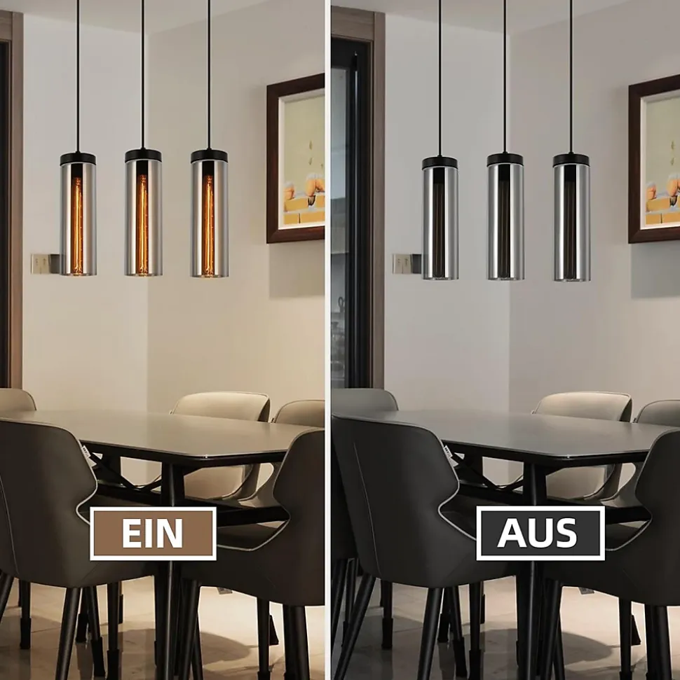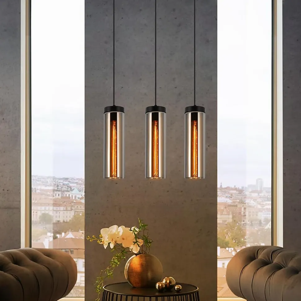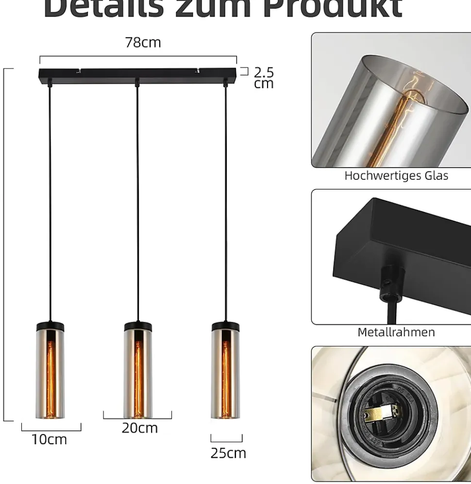 Design features la suspension est conçue avec un verre gris fumé qui donne à la source lumineuse une sensation de présence particulière et peut être combinée avec différents styles de meubles pour compléter harmonieusement l’esthétique de la pièce. En même temps, le verre a une bonne transmission de la lumière, ce qui permet de maximiser la lumière dans la pièce. Taille du produitla partie de l’abat-jour de cette suspension de salle à manger taille : 10 * 10 * 32.5 cm ; câble : 120 cm de long, réglable en hauteur;cadre de plafond droit dimensions : 46*5*2.5cm ; matériel : fer/verre. Source lumineuse interchangeable e27la tête de cette suspension en verre peut être remplacée, peut remplacer de manière flexible la source lumineuse de différentes douilles e27, comme le vintage, le moderne et d’autres styles, satisfaire pleinement vos besoins de bricolage. En outre, le plafonnier à 1 flamme a une puissance maximale de 25w,une tension d’entrée de 230v et une classification ip20. Matériaux de haute qualité & facile à installerla suspension est composée d’un cadre en fer robuste et d’un verre de haute qualité qui ne rouille pas facilement et qui a une grande transmission de lumière, ce qui garantit la durabilité et la sécurité. En outre, la lampe à suspendre est facile à monter avec une gamme complète d’accessoires, pas besoin d’outils compliqués ou de compétences professionnelles, vous pouvez terminer l’installation en quelques minutes. Multiples utilisationscette suspension de salle à manger dispose d’un design simple et généreux avec un aspect cylindrique minimaliste qui convient très bien aux îlots de cuisine, tables de salle à manger, salons, chambres, cuisines, couloirs, vérandas, magasins, hôtels, bars, bureaux et autres salles de réception.