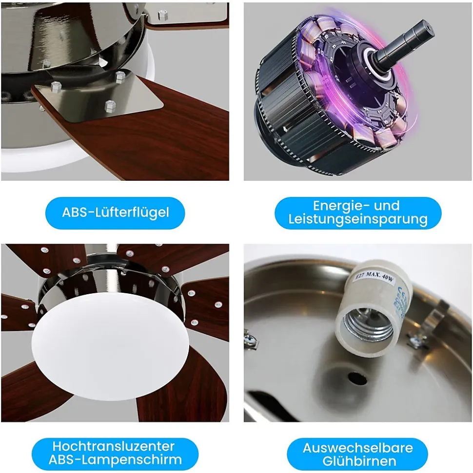 vitesse du vent + silencieux : la télécommande permet de régler la vitesse du vent de ce ventilateur de plafond (1 à 6 niveaux). Les 6 pales du ventilateur assurent un fonctionnement plus régulier du ventilateur et réduisent le bruit pendant le travail. Le sens de rotation du ventilateur peut également être inversé (non seulement pour assurer la fraîcheur en été, mais aussi pour accélérer la circulation de l’air en hiver).Ce produit ne comprend pas d’ampoule (une ampoule LED doit être utilisée). timing : la conception particulière de ce ventilateur vous permet de régler la durée de fonctionnement du ventilateur à l’aide de la télécommande, de sorte que vous n’avez pas à vous soucier d’attraper un rhume la nuit. De plus, il permet d’économiser de l’énergie. Le ventilateur a un réglage de minuterie de 1h/2h/4h. fonctionnalité : par rapport aux ventilateurs et aux lampes seuls,le plafonnier du ventilateur peut être utilisé pour deux fonctions à la fois. En réduisant ainsi la fréquence d’utilisation de la climatisation. taille et matériaux : taille 75 * 65,5 * 42,5, douille : e27, max. Puissance : 40w, surface d’irradiation : 10-15 m2. Il adopte un abat-jour en plastique + un corps de lampe en fer + une pale de ventilateur en abs + un moteur entièrement en cuivre, qui est robuste et durable, et la lumière est douce et non éblouissante. Le ventilateur de plafond fonctionne plus silencieusement. La durée de vie moyenne est de 50 000 heures. scène applicable : forme à la mode et simple, très bien adapté au salon, à la chambre à coucher, à la chambre d’enfant, au bureau, au couloir et à d’autres endroits. Simple à installer et facile à nettoyer.