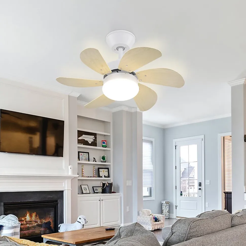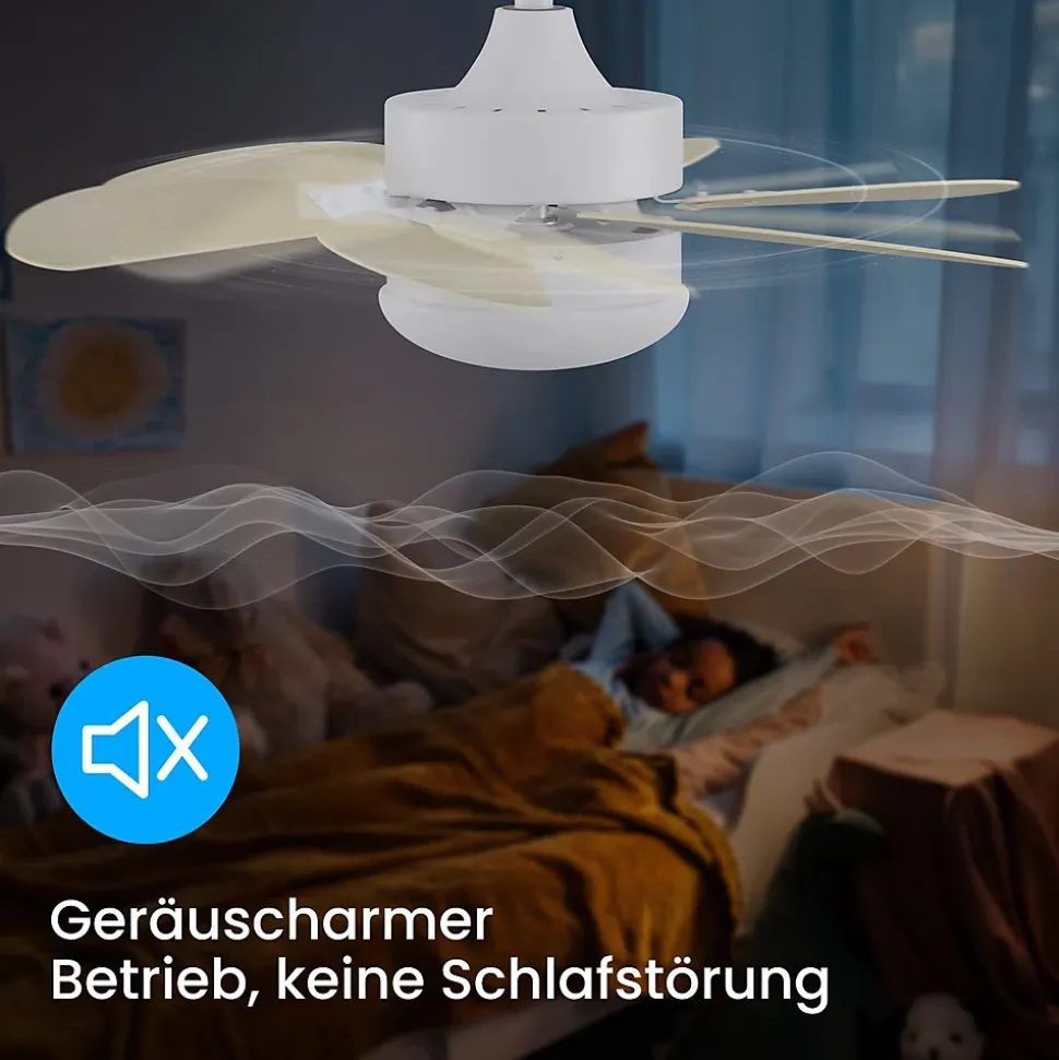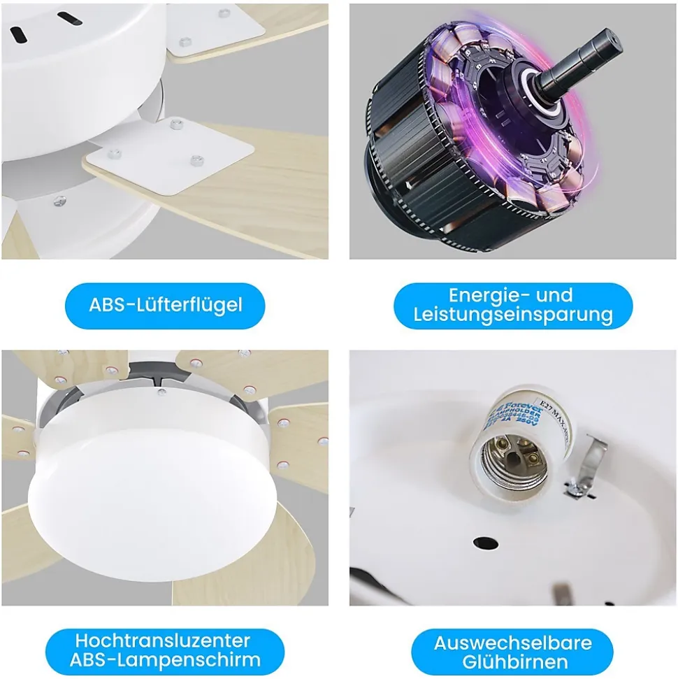Économie d’énergie : Comparé à l’utilisation séparée d’un ventilateur et d’un plafonnier, ce ventilateur-plafonnier combiné permet d’économiser électricité et énergie en regroupant les deux fonctions dans un seul appareil. Une utilisation réduite de la climatisation contribue également aux économies d’énergie et à un impact moindre.Ce produit ne comprend pas d’ampoule (une ampoule LED doit être utilisée).Minuterie : Grâce à son design innovant, ce ventilateur permet de régler sa durée de fonctionnement via la télécommande. Il dispose d’un timer réglable sur 1H/2H/4H, optimisant ainsi la consommation énergétique.Vitesse du vent + Silencieux : La télécommande permet d’ajuster la vitesse du vent (6 niveaux). Les 6 pales du ventilateur assurent une rotation fluide et réduisent les nuisances sonores. La direction de rotation est réversible, optimisant à la fois la fraîcheur estivale et la circulation d’air en hiver.Dimensions et matériaux : Dimensions 75x75x42,5 cm – Culot E27 – Puissance max. 40W – Surface éclairée 10-15 m². Abat-jour en acrylique + corps en métal + pales en ABS + moteur en cuivre pur garantissent robustesse et durabilité. Lumière douce et anti-éblouissement, avec un fonctionnement très silencieux. Durée de vie jusqu’à 30 000 heures.Applications : Design élégant et épuré, adapté au salon, chambre, chambre d’enfant, bureau, couloir et autres espaces. Installation facile et entretien simplifié. En cas d’abat-jour défectueux, contactez le service client pour obtenir des pièces de rechange.Installation facile : Le produit est livré avec un manuel d’installation pour un montage rapide et sans difficulté. Remarque : La pièce métallique sur les pales doit être orientée vers le haut lors de l’installation. Les pales peuvent être montées en sens horaire ou anti-horaire, mais le fonctionnement sera plus silencieux en rotation horaire.