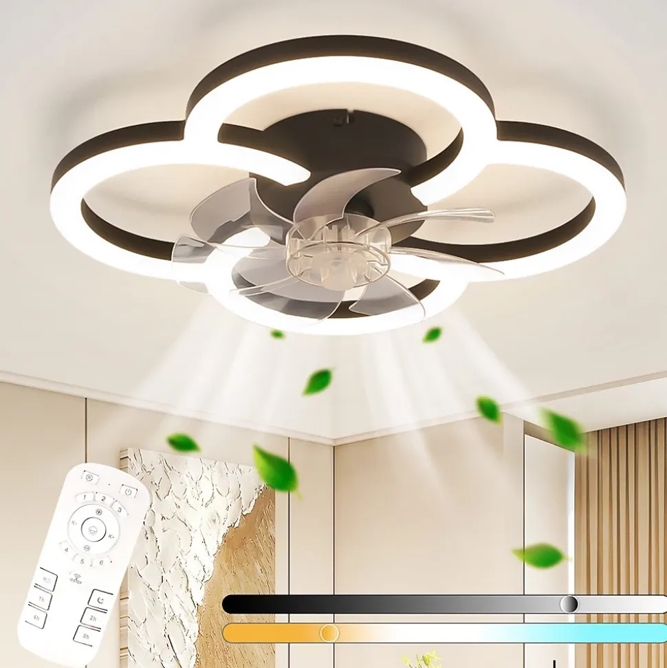 Design papillon élégant : Sublimez votre salon et votre chambre avec la forme papillon unique et moderne de ce plafonnier LED, créant une atmosphère unique et une décoration élégante.Luminosité et température de couleur réglables : Ce ventilateur de plafond vous permet de régler la luminosité de 10 % à 100 % et la température de couleur (3 000 K – 6 500 K). Choisissez parmi 6 vitesses de ventilation, une minuterie de 2/4 heures et un mode veilleuse pour un éclairage et une ventilation personnalisés et vous détendre pendant que vous travaillez ou jouez.Ventilateur de plafond silencieux : Alimenté par un moteur de 15 W, ce ventilateur de plafond avec éclairage fonctionne de manière stable et silencieuse. Le sens de rotation du ventilateur est réversible pour rafraîchir l’air en été et améliorer la circulation de l’air en hiver. Le ventilateur et l’éclairage peuvent fonctionner simultanément ou séparément, ce qui vous permet d’économiser de l’électricité et de l’énergie.Utilisation polyvalente : Ce ventilateur de plafond multifonctionnel avec éclairage est à la fois esthétique et pratique. Il convient à une grande variété d’espaces, tels que les salons, cuisines, salles à manger, chambres, chambres d’enfants, bureaux, studios et autres espaces de 5 à 20 m², alliant élégance et fonctionnalité.Installation facile : Ce ventilateur de plafond silencieux ne nécessite aucune installation compliquée. Il suffit de brancher le câble et de monter le plafonnier.