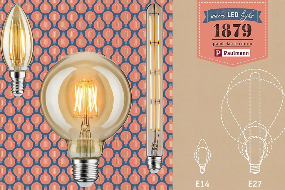 Les lampes LED à lumière dorée sont complètement tendance. L’ampoule sphérique édition 1879 d’une puissance de 6 watts diffuse sa lumière dans toutes les directions. L’ampoule idéale pour les suspensions et autres plafonniers. Bien plus qu’une belle décoration qui attire le regard elle crée de surcroît – grâce à agréable une température de couleur dorée – une atmosphère intime similaire à une lueur de bougie et peut être utilisée dans n’importe quelle douille E27 courant. Le commutateur mural permet de grader l’ampoule à 3 niveaux différents pour une facette supplémentaire de conception.