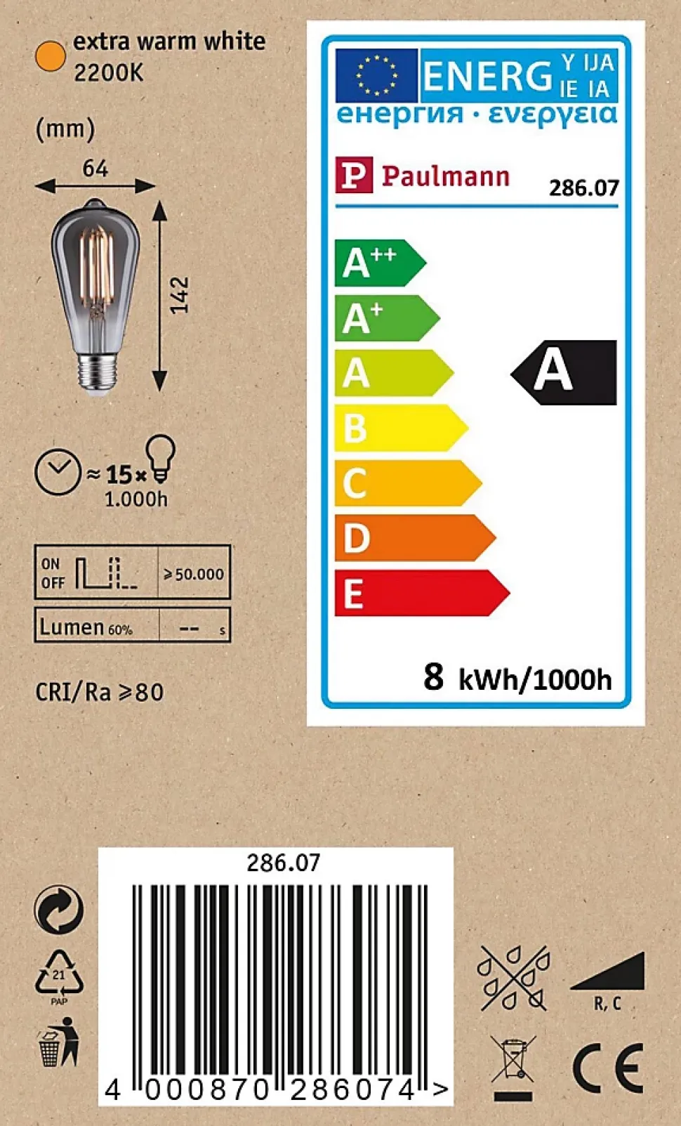 La lampe LED Vintage d’une puissance de 7,5 watts diffuse sa lumière dans toutes les directions. Les lampes LED confèrent une parfaite ambiance Vintage et, installées dans des suspensions rétro, sont de vraies accroche-regard. Elle a une agréable température de couleur dorée et est compatible avec les douilles E27 conventionnelles.