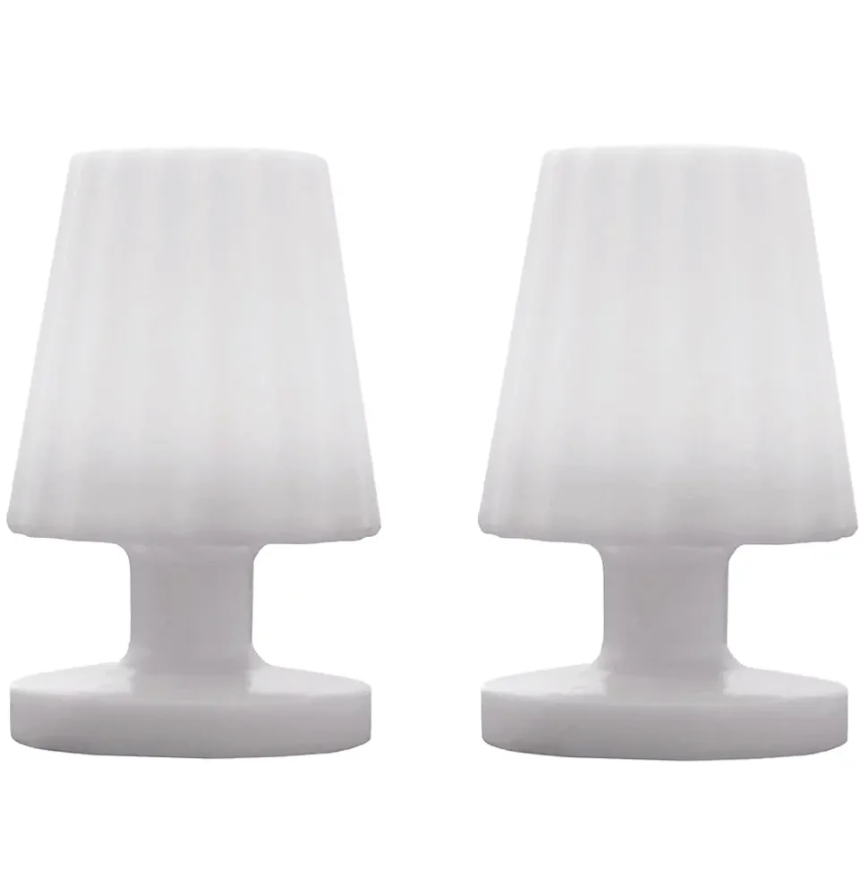 Le Lot de 2 Lampes de Table LED Sans Fil Lady Mini offre une solution d’éclairage portable qui allie un design sobre à une grande fonctionnalité. Ces 2 lampes autonomes se distinguent par leur polyvalence en intérieur comme en extérieur. Équipées d’une base LED blanc chaud, elles créent une atmosphère conviviale avec un flux de plus de 100 lumens. Très pratiques, elles se rechargent via le câble USB fourni en 4 à 6 heures pour une autonomie atteignant 8 heures. Composées de PVC robuste ø13x H22cm, elles sont protégées contre les éclaboussures (IP44) et résistent aux rayons UV, parfaites pour la terrasse ou les tables de fêtes. Profitez d’un éclairage nomade fiable avec une facilité d’entretien à l’eau savonneuse. Pour un effet encore plus chaleureux, combinez-la avec d’autres sources de lumière et variez les hauteurs d’installation. Vous pouvez la disposer le long d’une pergola, d’une rambarde ou d’un mur.