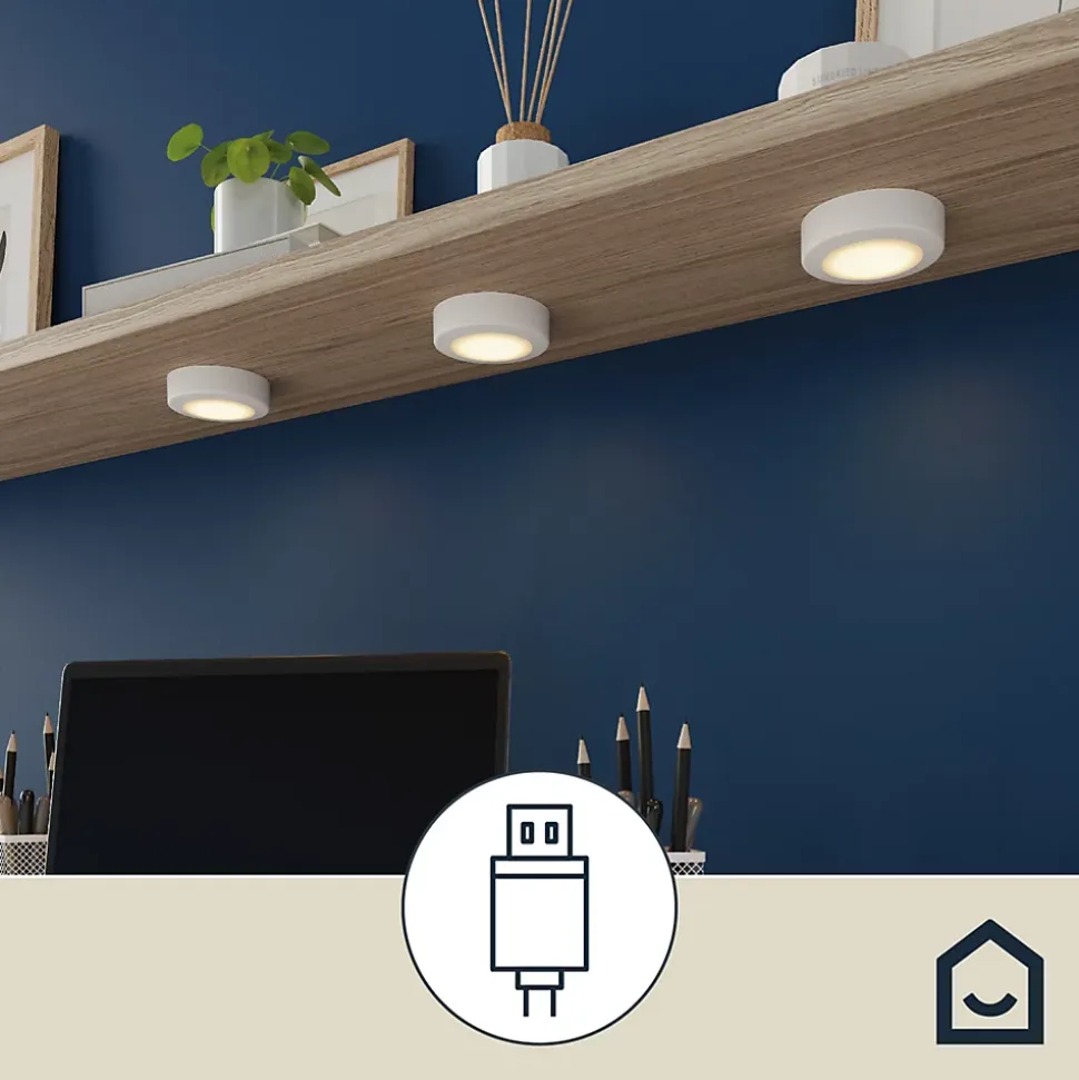 3 spots à pile Bly Bo LED intégrée variation de blancs IP20 80lm 1W Ø8xH.2,5cm blanc GoodHome