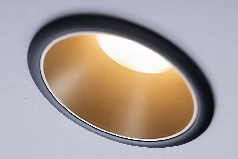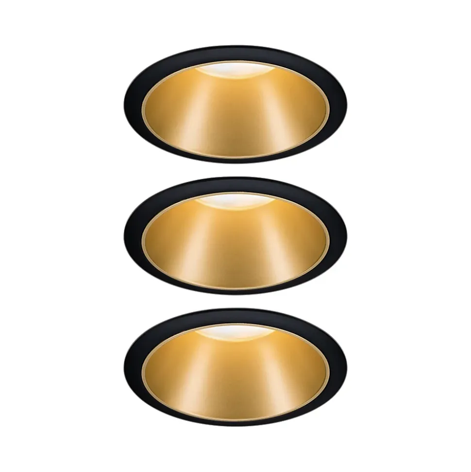 3 spots encastrables Cole LED intégrée blanc chaud IP44 3x470lm Ø8cm doré finition noire Paulmann