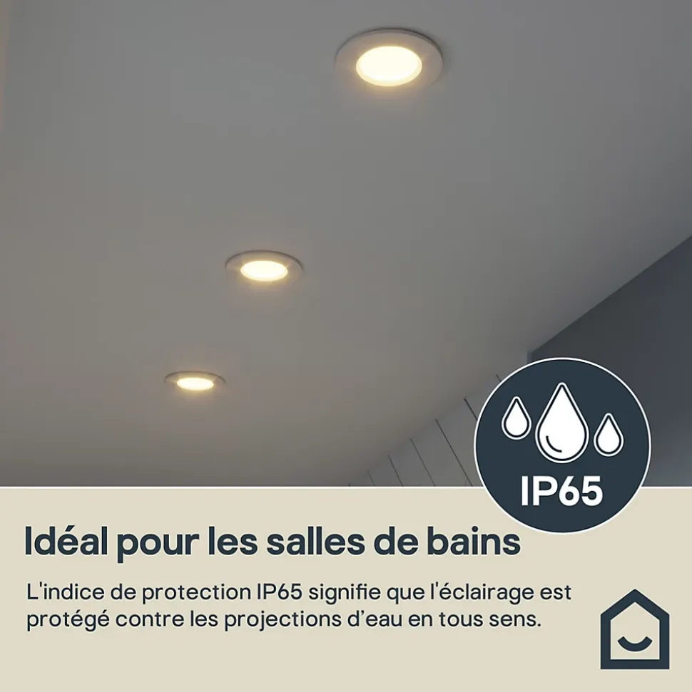 3 spots encastrables Etana LED intégrée blanc chaud IP65 410lm 4.7W Ø8.5cmxH.3.1cm métal blanc GoodHome