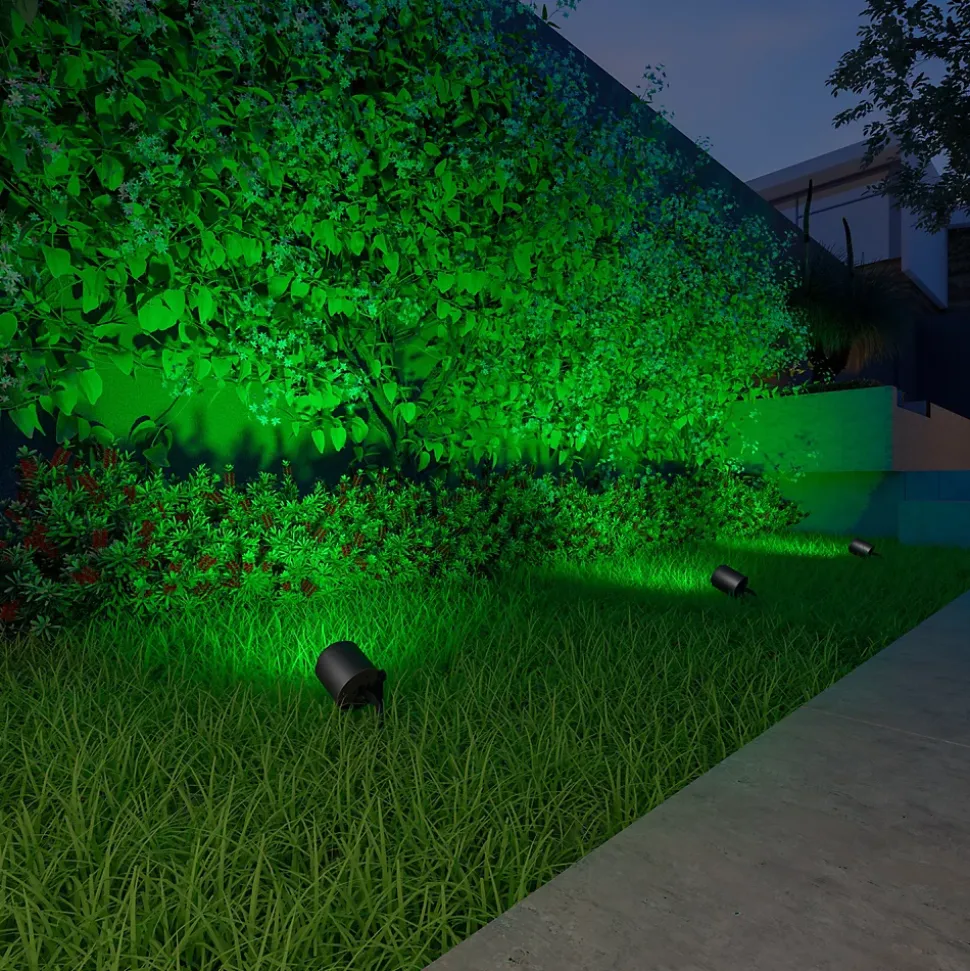 - Utilisez les luminaires comme éclairage de chemin ou placez les lampes extérieures dans l’herbe et profitez d’une lumière blanche froide à chaude avec 16 millions d’options de couleurs supplémentaires