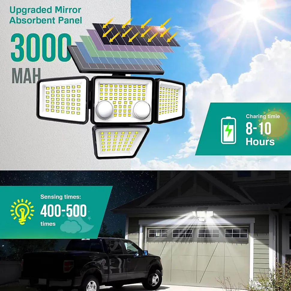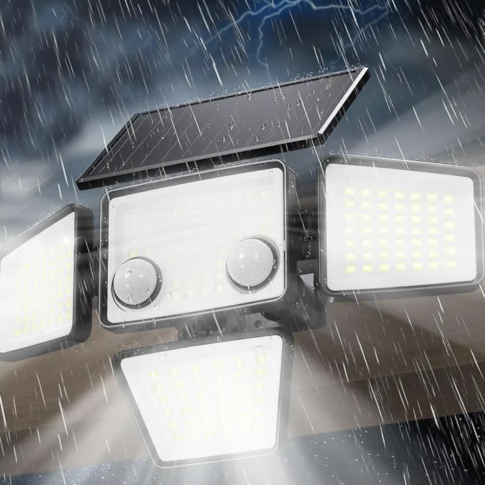 Le lot de 4 projecteurs solaires Fairview à 4 têtes orientables propose un éclairage extérieur blanc froid puissant de 700 lumens par unité. Équipé de 188 LEDs ultra-lumineuses, chaque système couvre un angle large de 270 degrés pour illuminer efficacement de grands espaces, jardins ou garages. Son détecteur de mouvement d’une portée de 6 à 8 mètrès propose 3 modes intelligents adaptables à vos besoins de sécurité. Sa batterie lithium de 2200 mAh se recharge en 6 à 8 heures au soleil pour une autonomie technique de 7 heures. Certifiés IP65, ces projecteurs sont totalement étanches à la pluie et à la poussière. Pratique au quotidien, elle se déplace et se range facilement lorsque vous souhaitez libérer l’espace. Parfaite pour les repas en plein air, les apéritifs ou les soirées d’été, elle crée immédiatement une ambiance douce et accueillante.
