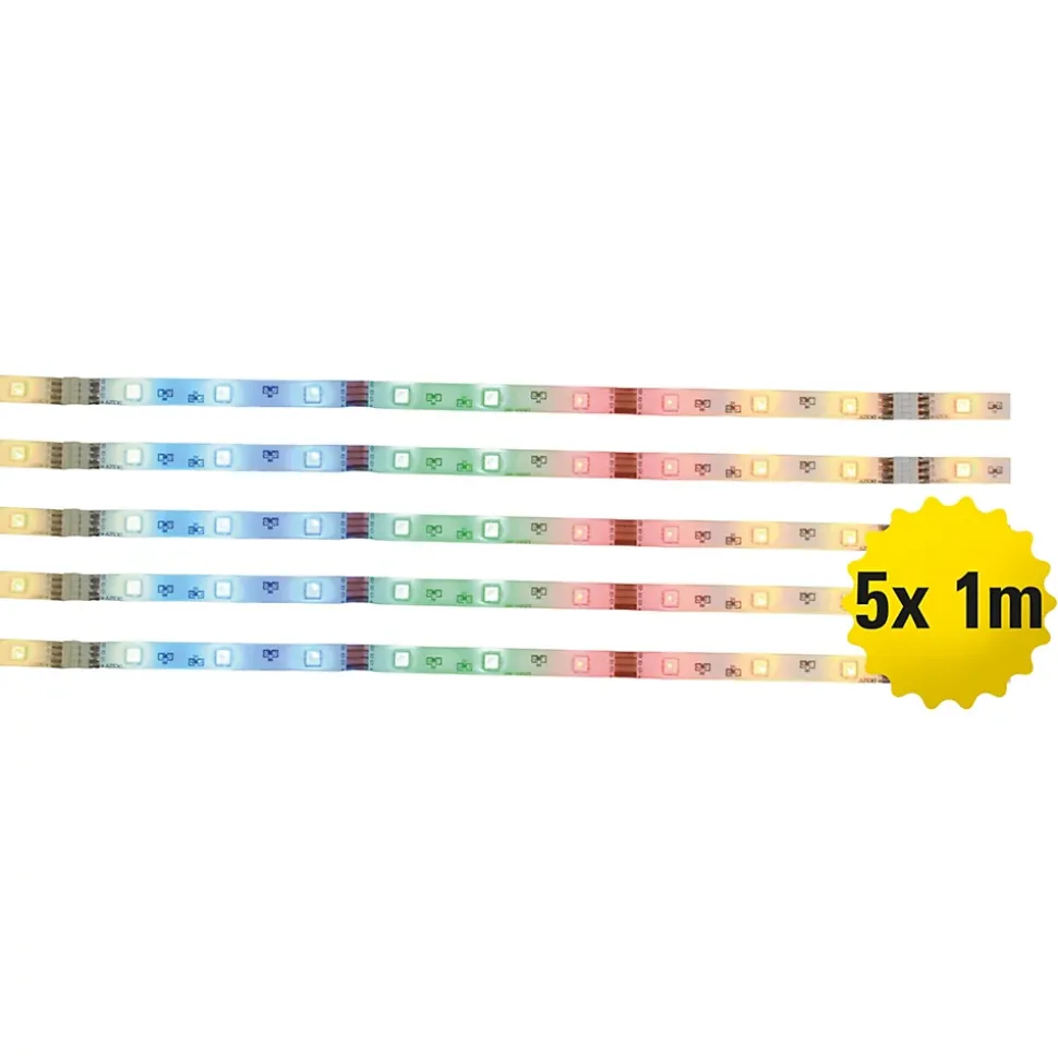 Avec la bande LED RGB 5x 1m, vous mettez habilement l’accent. Créez une atmosphère extraordinaire avec cette bande. Avec la chaîne, vous créez une ambiance chaleureuse et particulière qui transforme votre espace de vie en un lieu magique. Donnez à votre intérieur une sensation chaleureuse et festive avec ce Stripe clair et transparent ! D’une largeur de 1 cm et d’une hauteur de 0,2 cm, cet article est un véritable miracle d’espace et peut être placé partout. Il est équipé de la technologie LED la plus moderne et assure ainsi une lumière vive la nuit. Faites briller votre maison d’un nouvel éclat ! Avec le strip LED de 24 watts, vous bénéficiez d’un excellent éclairage et de la possibilité de varier la luminosité de votre pièce. Grâce à ce strip, vous pouvez aménager votre espace d’une toute nouvelle manière : Avec des changements de couleurs RGB de différentes intensités, vous créez une atmosphère unique dans votre maison.