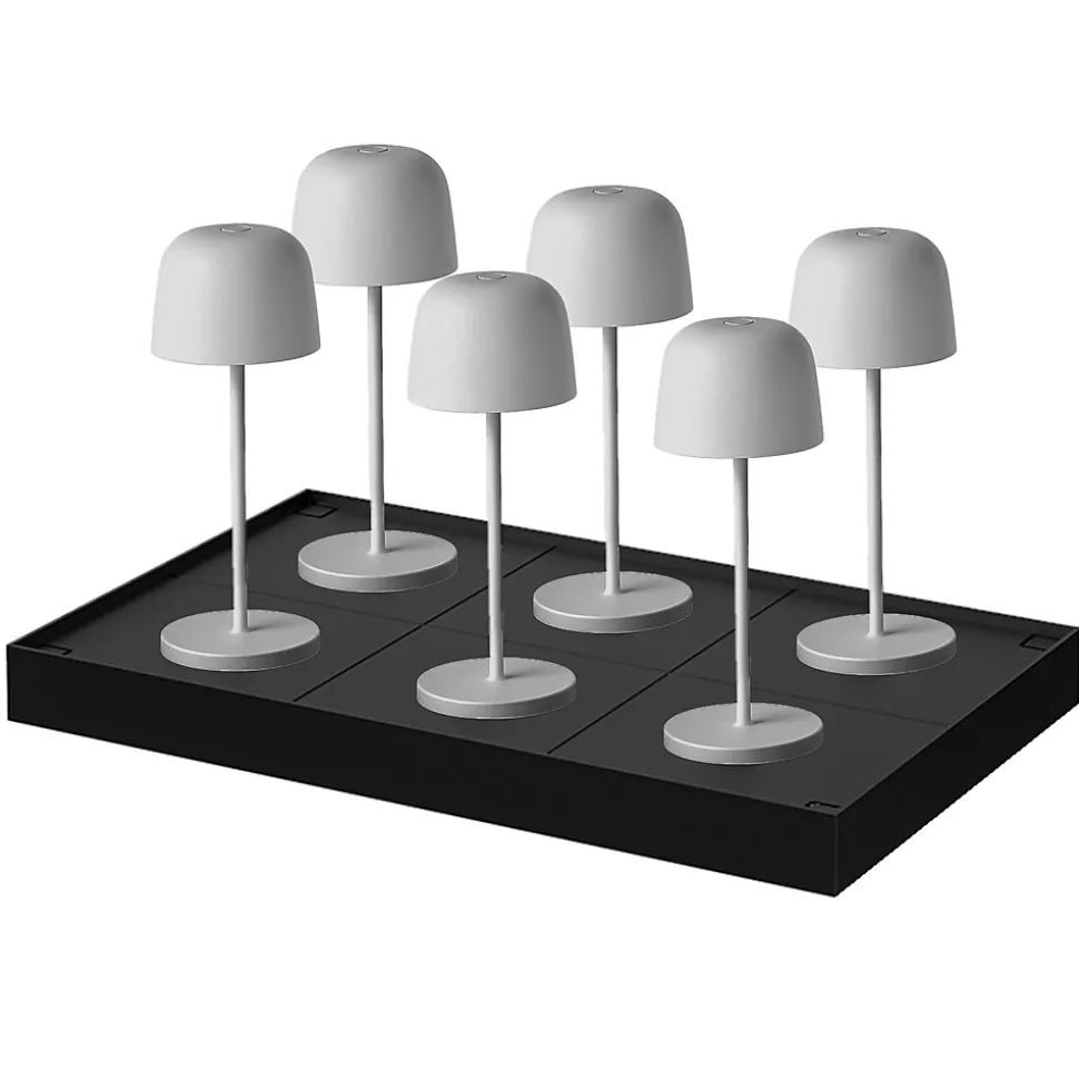 Optimisez l’éclairage de vos grands espaces avec ce lot de 6 lampes Sophia Grey et leur plateau de chargement multiple. Chaque lampe de table sans fil en aluminium gris allie technologie tactile et design contemporain. Elles disposent d’un variateur d’intensité avec fonction mémoire pour conserver vos réglages préférés à 3000K. Le plateau de charge par contact inclus facilite la gestion quotidienne en rechargeant les 6 unités simultanément en 5 heures. Avec un flux de 130 lumens et une certification IP65, ces lampes sont idéales pour les restaurants, jardins ou terrasses, car elles résistent parfaitement aux éclaboussures. Légères et maniables, elles mesurent 20 cm de hauteur et offrent une diffusion harmonieuse grâce à leur diffuseur en polycarbonate. Ce set haut de gamme supprime les contraintes de câbles tout en apportant une esthétique raffinée et une durabilité exceptionnelle à votre établissement ou votre maison, garantissant une ambiance chaleureuse et constante.