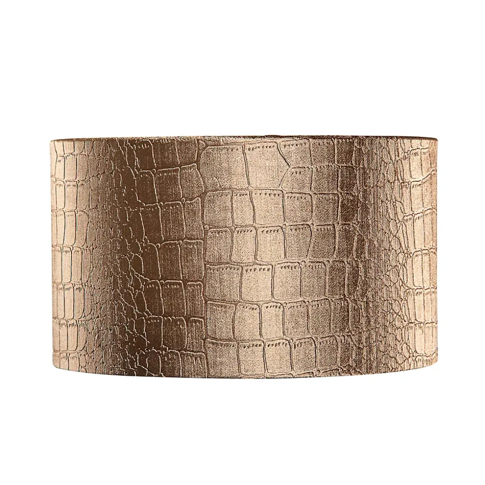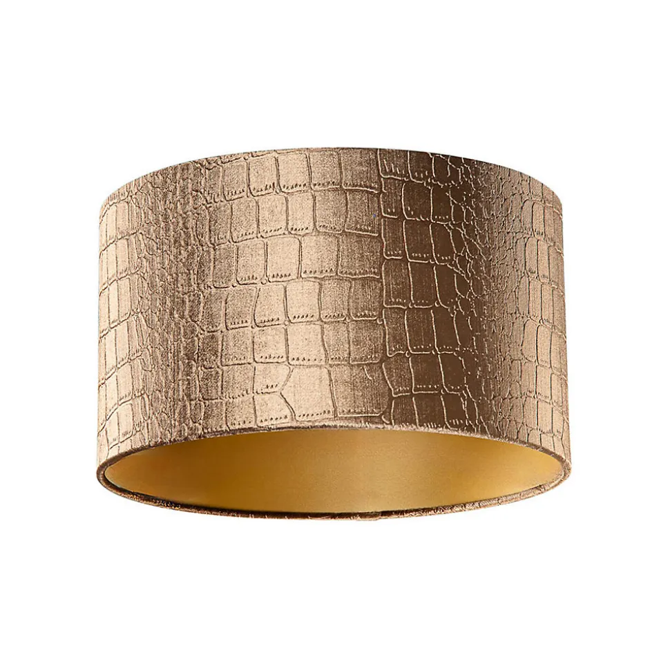 Ajoutez une touche d’extravagance à votre intérieur avec cet élégant abat-jour en velours effet crocodile et intérieur doré. Le magnifique imprimé crocodile couleur bronze chaud confère à l’abat-jour un look unique et luxueux qui s’adapte parfaitement à un intérieur moderne ou classique. Grâce à son intérieur doré, la lampe diffuse une lumière chaude et atmosphérique créant instantanément une ambiance chaleureuse. Avec un diamètre de 35 cm et une hauteur de 20 cm, cet abat-jour est idéal pour les lampes de table et les suspensions. Optez pour l’élégance avec une touche exotique et faites de votre éclairage un véritable accroche-regard !