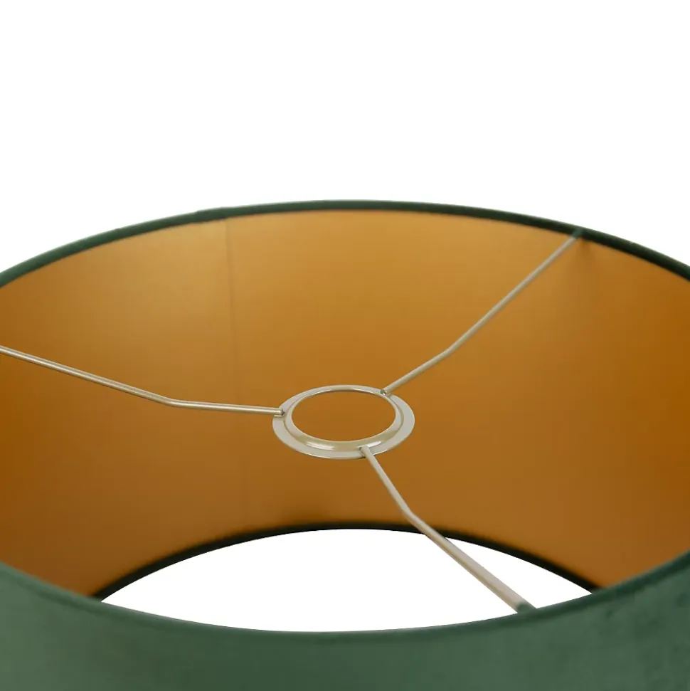 Cet abat-jour en velours est un véritable atout pour votre intérieur. Avec cet abat-jour, vous pouvez donner à votre lampadaire ou suspension un aspect attrayant, l’abat-jour agissant comme un créateur d’ambiance. Cet abat-jour a une couleur vert mousse, ce qui donne immédiatement à votre lampe un aspect élégant. En plus du design unique à l’extérieur, l’abat-jour a également une belle finition dorée à l’intérieur, ce qui crée un effet d’éclairage chaleureux dans la maison. Ajoutez simplement une source de lumière qui s’insère dans un culot E27 et complétez-la avec un luminaire de votre choix. Cet abat-jour a un diamètre de 35 cm et une hauteur de 20 cm. Utilisez ce magnifique abat-jour vert mousse et profitez de moments d’ambiance dans votre salon ou votre chambre !