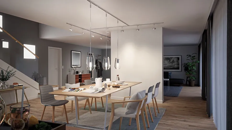 Faites resplendir votre cuisine d’un nouvel éclat ! Les abat-jours tout en verre de haute qualité pour suspension URail 2Easy ne sont pas seulement décoratifs, ils fournissent également un éclairage particulièrement non éblouissant. Appréciez vos repas en famille ou une réunion agréable d’amis en l’absence de contre-jour désagréable.