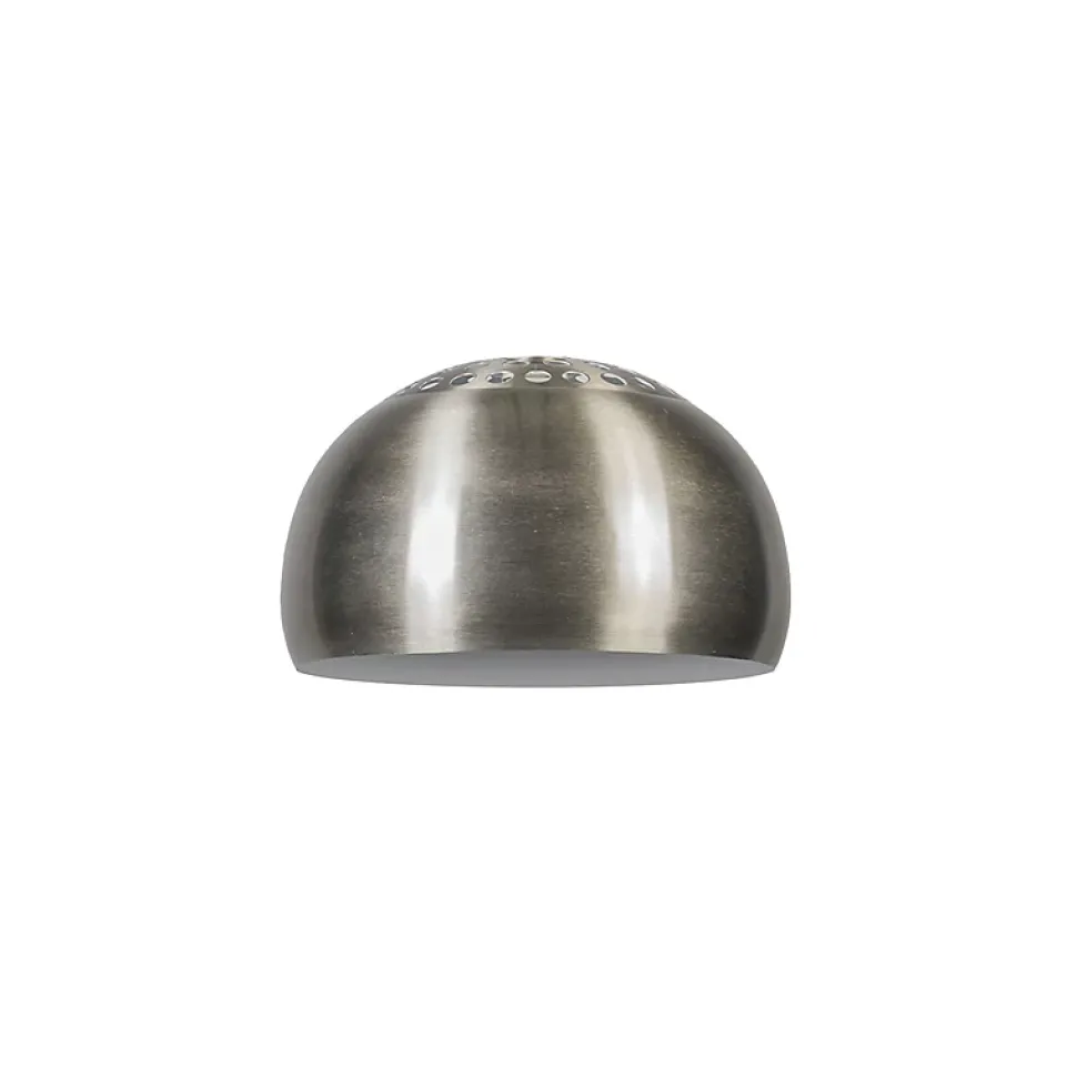 Avec cet abat-jour en métal, donnez un look moderne à votre intérieur. L’abat-jour en métal pour suspension, qui peut également être utilisé facilement pour un lampadaire, est sphérique et ouvert en bas. Les trous en haut créent un effet lumineux surprenant. L’abat-jour est composé de deux parties : une partie plate légèrement incurvée avec des trous (en haut) et un abat-jour sphérique avec un intérieur blanc. L’ensemble est ainsi joliment façonné et l’abat-jour peut être légèrement ajusté. Un véritable accroche-regard pour votre intérieur.