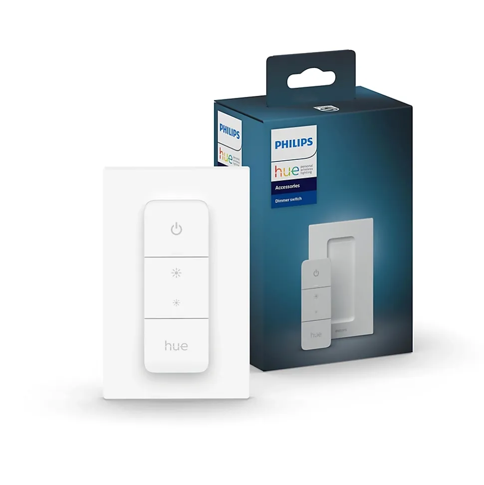 Maîtrisez votre éclairage en toute simplicité avec le Dimmer Switch Hue. Variez l’ambiance de votre maison en un geste : tamisez la lumière, changez de scène ou laissez le variateur adapter l’éclairage selon l’heure de la journée. Sans fil et fonctionnant à piles, il s’installe facilement partout – au mur, sur une surface magnétique, ou à portée de main comme une télécommande. Profitez d’un contrôle instantané de l’intensité lumineuse, accédez rapidement à vos scènes favorites et créez l’atmosphère parfaite, à tout moment.