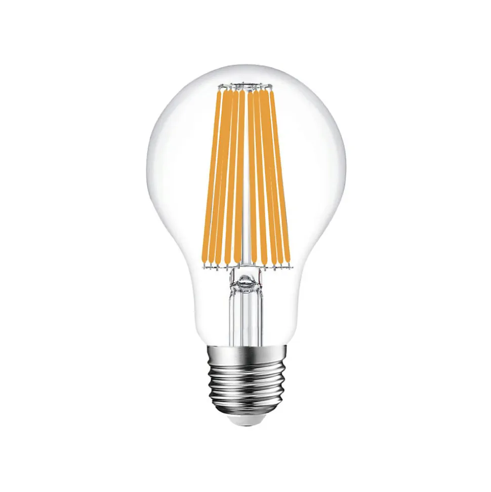 Cette ampoule LED A67 à culot E27 allie un rendement lumineux élevé à un design décoratif, idéale pour éclairer les espaces résidentiels ou commerciaux avec un style moderne et fonctionnel. Avec une puissance de 18W et un flux lumineux de 3280 lumens, elle offre une lumière parfaite pour une visibilité optimale et un confort visuel optimal.Grâce à son large angle de faisceau de 320°, elle assure une distribution lumineuse uniforme. La technologie LED garantit un allumage instantané, des températures de fonctionnement basses et une longue durée de vie de 25 000 heures, avec plus de 12 500 cycles d’allumage.Culot : E27 – Compatible avec les douilles standardPuissance : 18 W – Consommation : 18 kWh/1 000 hFlux lumineux : 3 280 lumensAngle de faisceau : 320°IRC : ≥ 80 – Bon rendu des couleursDurée de vie moyenne : 25 000 heuresclasse énerg. : CDimensions : Ø 67 x 120 mmIdéale pour les lampes apparentes, les suspensions décoratives et les environnements nécessitant une lumière puissante et uniforme, cette ampoule est un excellent choix pour ceux qui recherchent efficacité et design