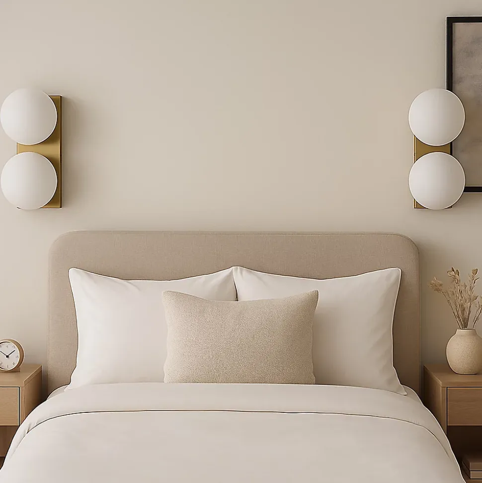 Applique Murale « Bolonia » – Double Sphère en Verre Opale et Base Rectangulaire Finition Chromée ou Dorée, E27L’applique murale « Bolonia » allie l’élégance du design contemporain à la douceur intemporelle du verre opale. Sa structure minimaliste se compose d’une base rectangulaire en métal —disponible en finition chromée ou dorée— qui soutient deux sphères en verre blanc mat, diffusant une lumière chaude et enveloppante.Parfaite pour apporter une touche sophistiquée aux salons, chambres, couloirs ou entrées, le modèle « Bolonia » est à la fois une solution d’éclairage fonctionnelle et un élément décoratif adapté aux styles modernes, classiques ou art déco.Caractéristiques principales :Design élégant avec double globe en verre opaleBase rectangulaire en métal, finitions : chromée brillante ou dorée chaudeDouilles E27 compatibles avec des ampoules LED G45 (non incluses)Lumière douce idéale pour les espaces de détente ou de passageInstallation facile avec matériaux de haute qualitéDisponible en deux finitions, l’applique « Bolonia » transforme n’importe quel mur en point focal plein de charme.