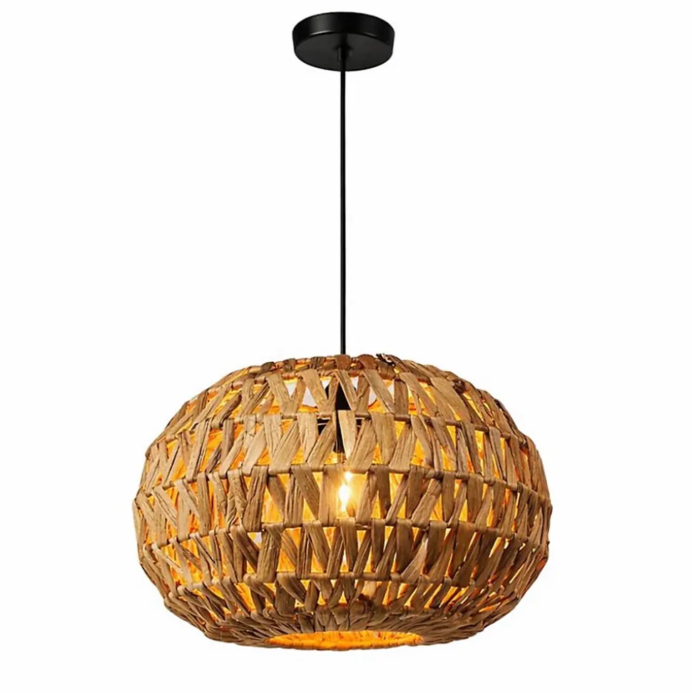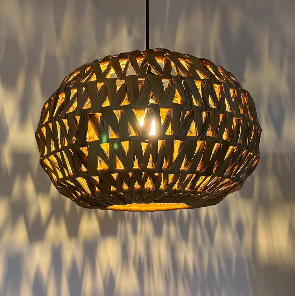 Suspension « NÁVIA » en rotin naturel Ø38 cm – Style bohème/nordique, douille E27La suspension NÁVIA se distingue par son design artisanal et son esthétique naturelle, ce qui en fait un élément décoratif idéal pour apporter chaleur et personnalité à tout intérieur. Fabriquée en rotin naturel tressé, sa forme enveloppante et organique s’intègre parfaitement aux styles bohème, nordique, méditerranéen ou contemporain.Le tressage du rotin laisse passer la lumière, créant un effet lumineux doux et accueillant, idéal pour les salons, salles à manger, chambres, îlots de cuisine ou espaces commerciaux tels que cafés et boutiques.Équipée d’une douille E27, elle est compatible avec une large gamme d’ampoules LED ou décoratives (ampoule non fournie), vous permettant de personnaliser l’intensité et la température de couleur de l’éclairage. Son câble ajustable permet d’adapter facilement la hauteur à vos besoins.Caractéristiques principalesConception artisanale en rotin tressé naturelStyle bohème et nordique chaleureux et intemporelLumière d’ambiance douce et décorativeDouille E27 compatible avec les ampoules LEDCâble ajustable pour une installation personnaliséeDimensionsDiamètre de l’abat-jour : Ø 38 cmHauteur de l’abat-jour : 25 cmLongueur du câble : ajustable jusqu’à 90 cmDiamètre du plafond : 12 cmRemarque importanteChaque lampe étant fabriquée à partir de matériaux naturels, elle est unique.La couleur du rotin peut légèrement varier d’une lampe à l’autre, paraissant plus claire ou plus foncée, ce qui fait partie intégrante de son caractère artisanal et naturel.