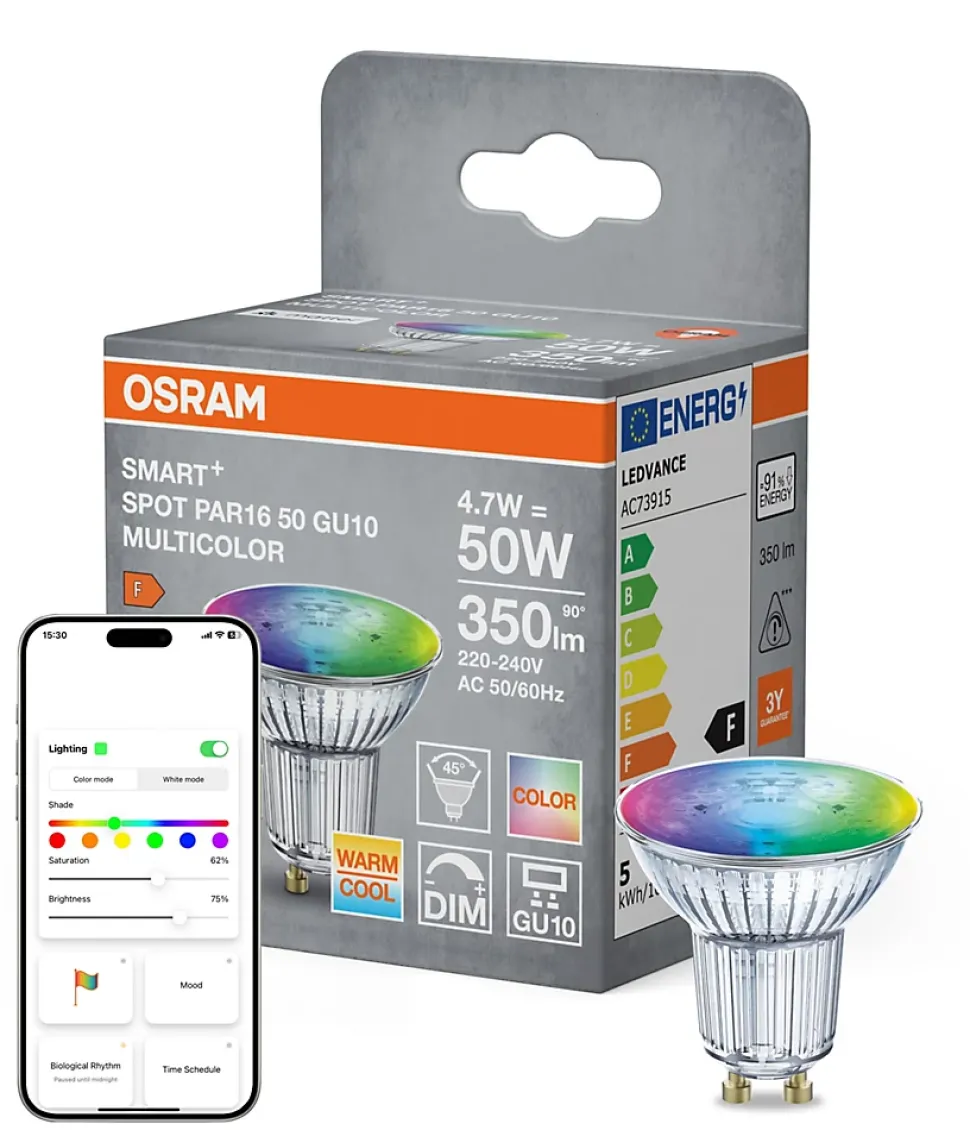 ampoule à led – osram smart+ matter spot – gu10 – 4.9w – rgb – osram 462191