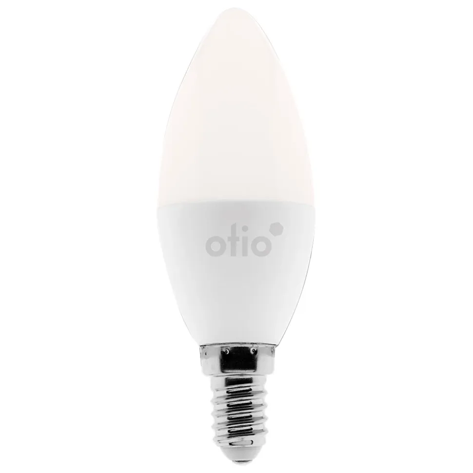Ampoule connectée WIFI LED E14 5.5W – OtioGrâce à cette ampoule LED connectée, vous pourrez personnaliser votre intérieur et contrôler l’intensité ou le rendu lumineux de vos éclairages depuis votre smartphone grâce à l’application gratuite OtioHome. Vous pouvez ainsi la piloter chez vous depuis votre smartphone ou à distance grâce à l’application gratuite. Programmez l’allumage ou l’extinction de vos ampoules, simulez une présence ou personnalisez votre intérieur en créant des ambiances colorées ou tamisées selon vos besoins. Grâce à la technologie LED, cette ampoule vous permet de réaliser d’importantes économies en matière de consommation d’énergie par rapport à une ampoule ordinaire. Caractéristiques : Culot E14 Puissance : 5.5W Flux lumineux : 470 Lumens Contrôle à distance grâce à l’application OtioHomeCompatible Google Home et Amazon Alexa