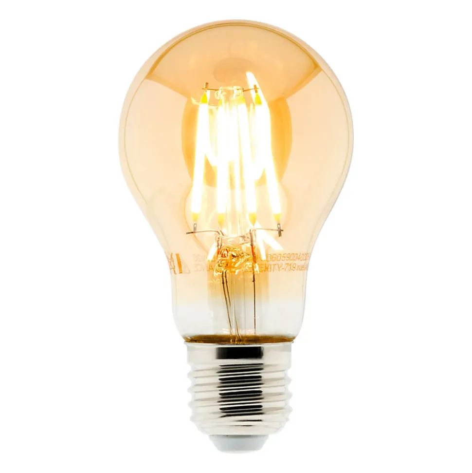 Ampoule LED filament. Couleur(s) : ambrée. Ampoule à filament LED ambré pour un éclairage chaleureux. Ambiance personnalisable et contemporaine. Technologie LED haute qualité. Consommation énergétique environ 80 % inférieure aux ampoules traditionnelles. Durée de vie longue, faible émission de chaleur. Compatible avec la plupart des luminaires standards. A l’unité ou en lot