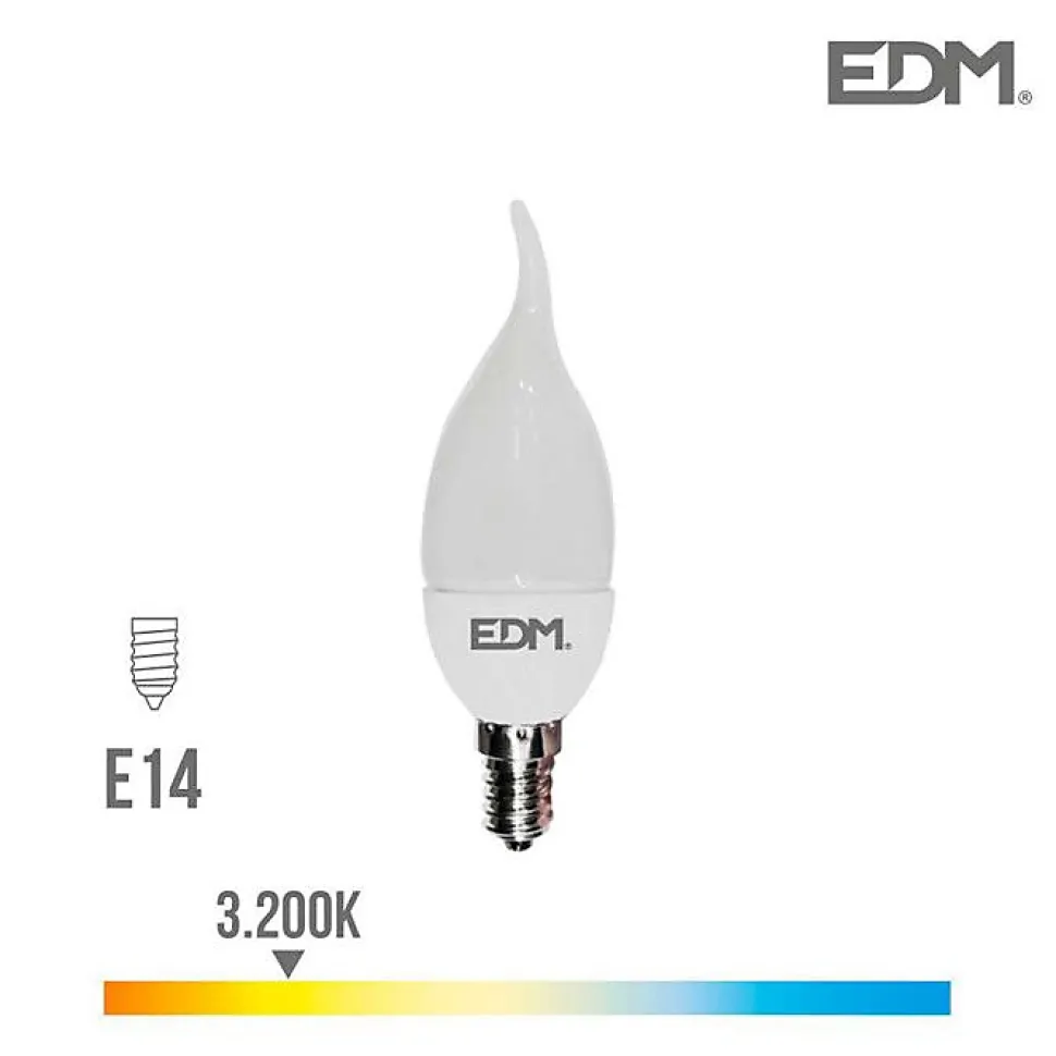 Cette ampoule bougie Bohême LED SMD 5W E14 3200K lumière chaude EDM 35495 est un produit de qualité de la marque EDM. Elle a une durée de vie moyenne de 30000 heures et une puissance équivalente de 40W. Elle est de classe énergétique A+ et compatible avec un variateur. Elle est idéale pour une utilisation en intérieur.