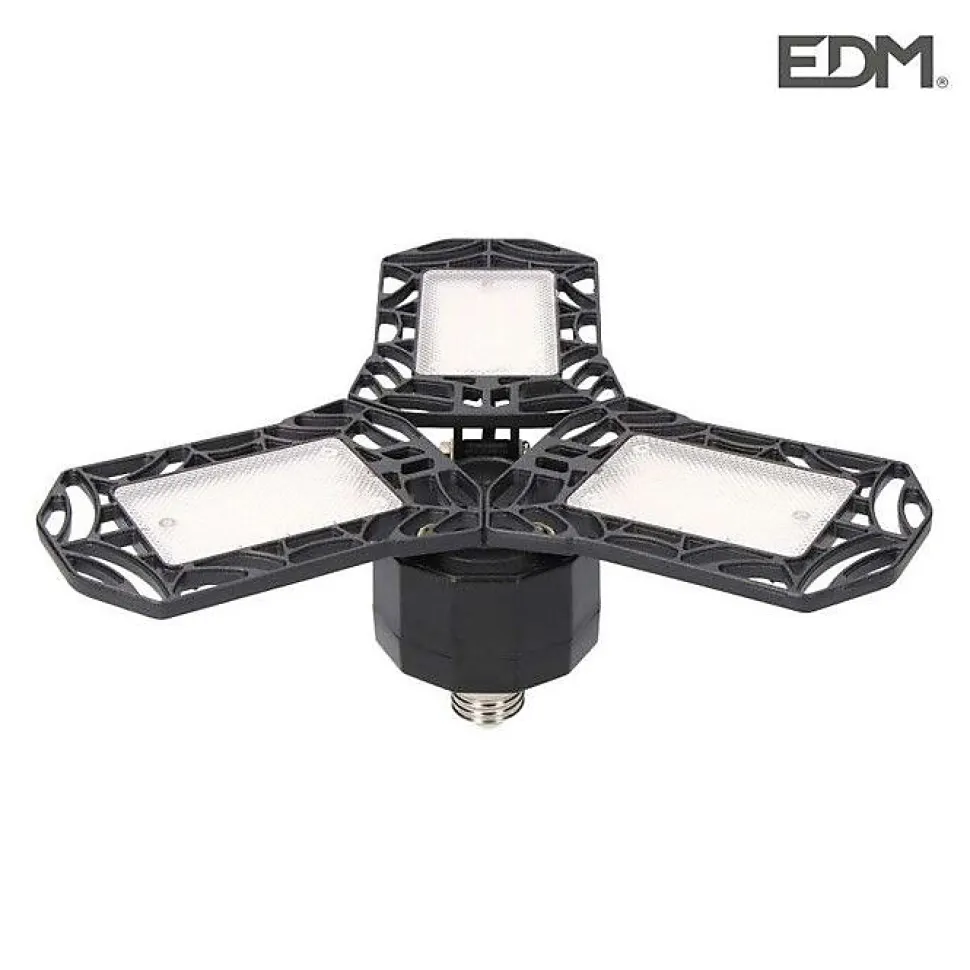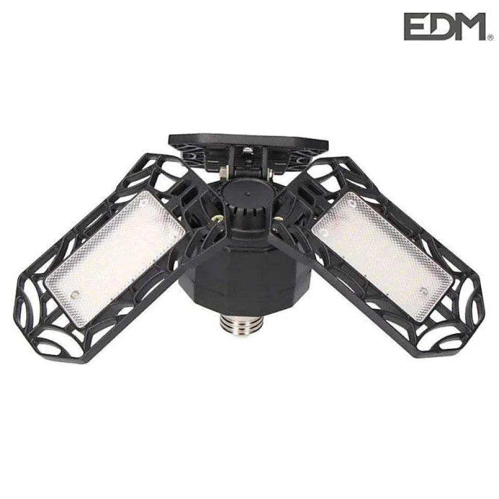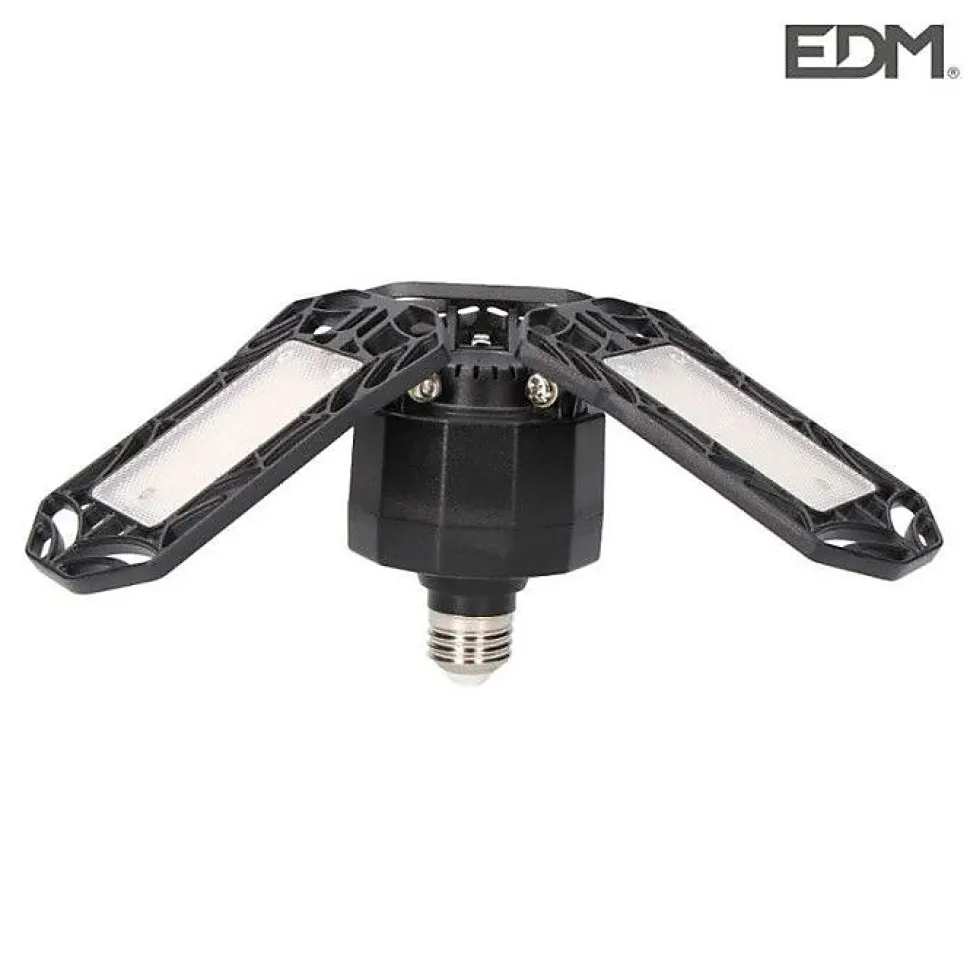 Ampoule feuille led e27 60w 6.000 lm 6.400k lumière froide edm. Cette ampoule est composée de 3 luminaires pliables jusqu’à 90, degré d’ouverture de la lumière 180 à 360, en plastique et aluminium.ip20, 72 leds, idéal pour garages, entrepôts… 26×12,5cm