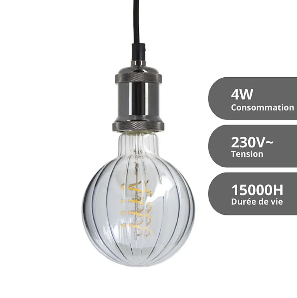 Xanlite – Ampoule Filament LED déco verre ciselé G95, culot E27, 240 Lumens, conso. 3W (equivalence 25W), Blanc chaud – RFDE240B95STRS