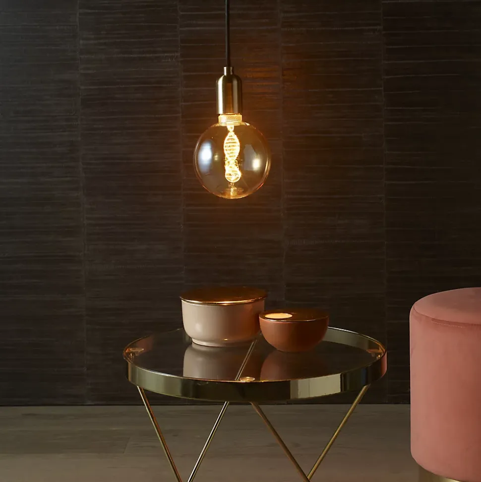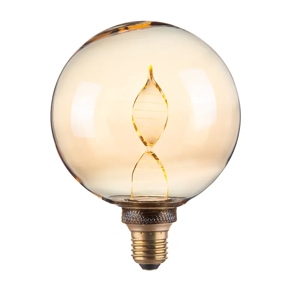 - Ampoule ambrée de forme globe avec un magnifique filament led en forme ADN