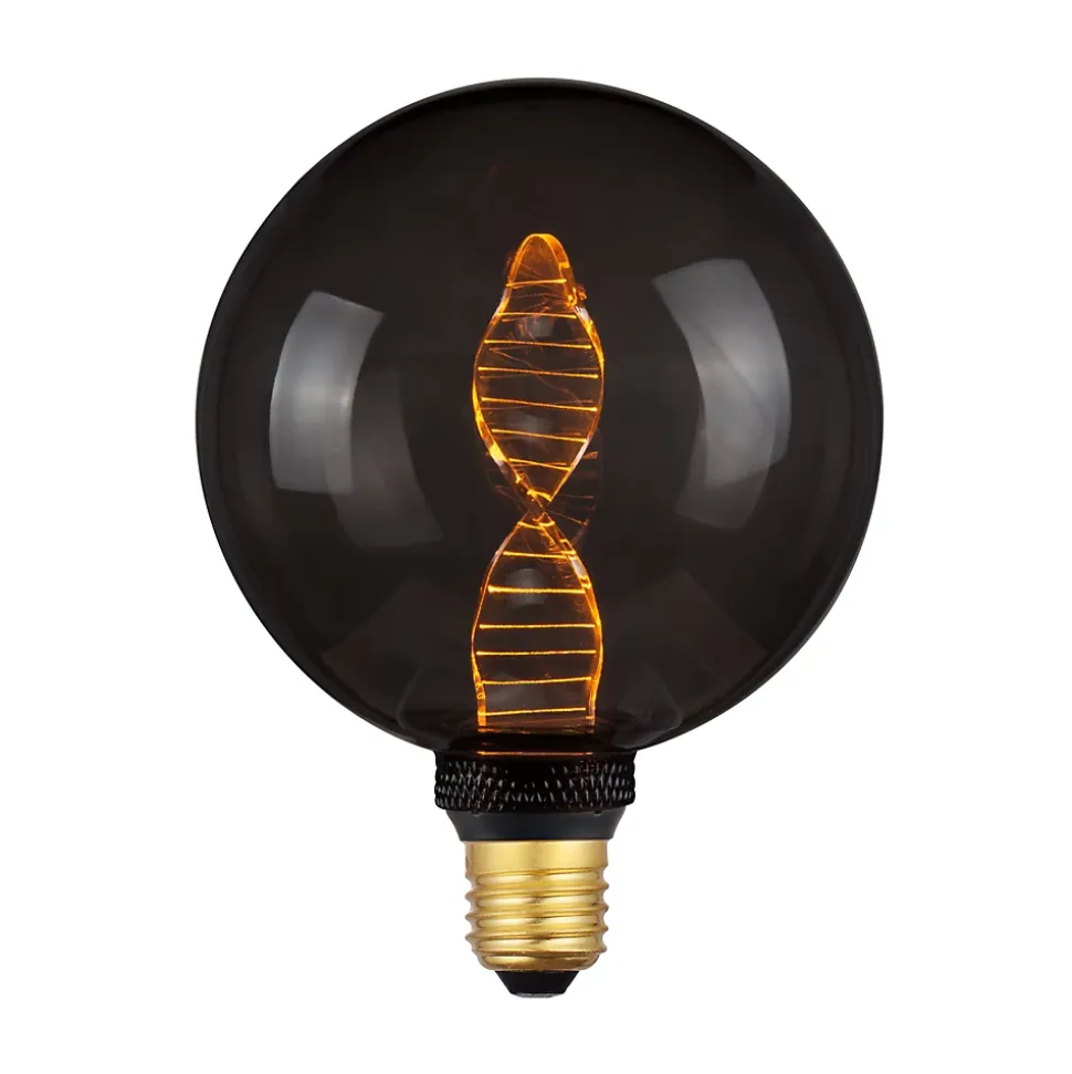- Ampoule smokey de forme globe avec un magnifique filament led en forme ADN