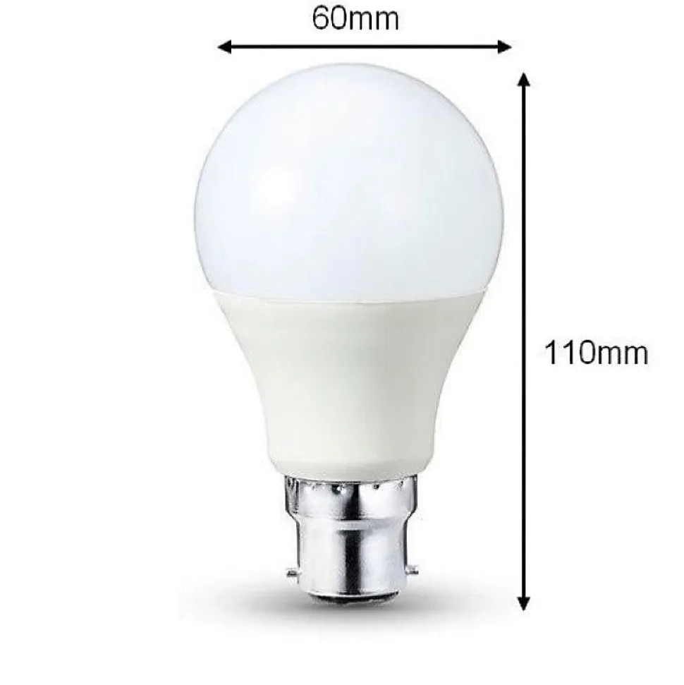 - Avec une consommation électrique 9W, notre Ampoule LED B22 9W 220V A60 180° (Pack de 10) possède un éclairage de 806 lumens.