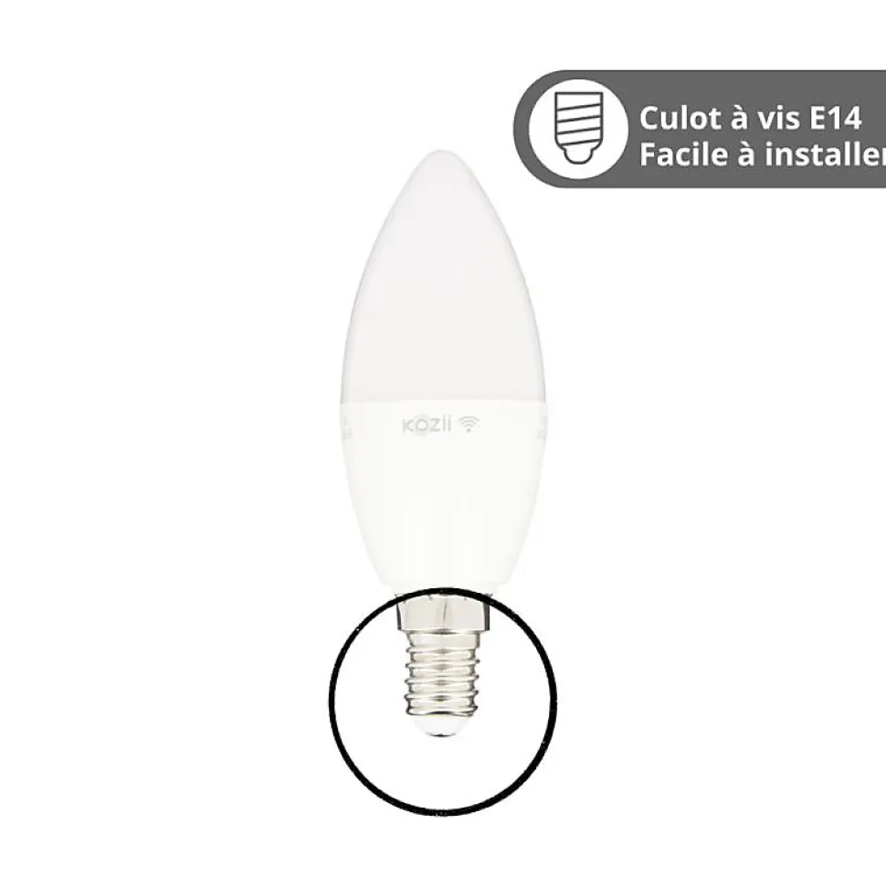 KOZii – Ampoule LED connectée KOZii, éclairage multi-blancs (2700 à 6500 kelvins), flamme, culot E14, conso. 6W, , 400 LM, angle 180° – KV470FCCT