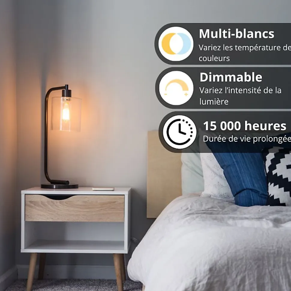 KOZii – Ampoule LED connectée KOZii, éclairage multi-blancs, Filament E27 ST64 au verre ambré, 4,9W cons. Variation de luminosité – KRFDE470STACCT