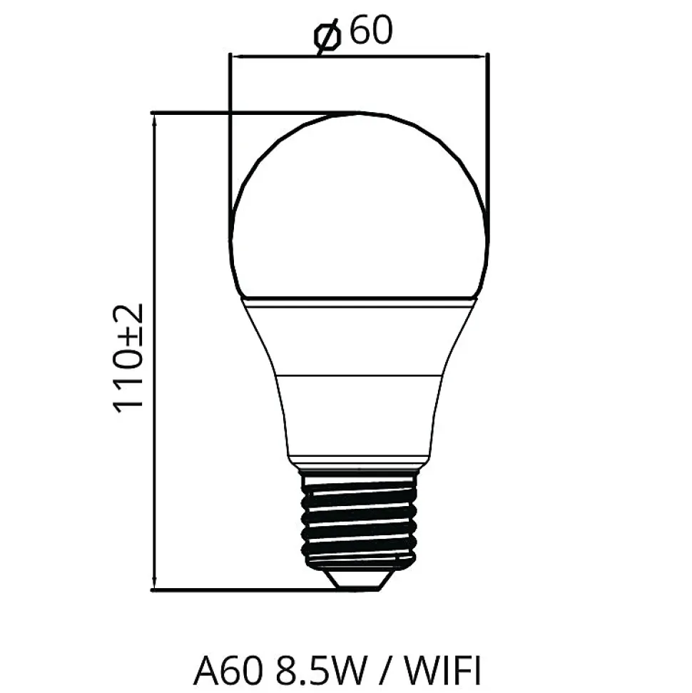 Contrôlez votre éclairage en toute simplicité avec l’ampoule LED connectée WiFi E27 8,5W A60. Avec ses fonctionnalités RGBW, sa compatibilité avec les assistants vocaux et son rendement élevé, elle s’adapte à tous les usages domestiques.Caractéristiques de l’ampoule LED WiFi E27 8,5W A60Puissance : 8,5W (équivalent 68W incandescente)Flux lumineux : 806 lumensAngle d’éclairage : 200°Température de couleur : RGBW (multicolore + blanc)Fonction dimmable : oui (via application)Connectivité : WiFi 2,4 GHzFormat : A60Culot : E27Tension : 220 – 240VLongueur : 11 cmIndice de protection : IP27Indice de rendu des couleurs : Ra ≥ 80Durée de vie : ~20 000 heuresCertification : CE & RoHSGarantie : 2 ansLes atouts de l’ampoule connectée RGBW 8,5W A60Avec ses 806 lumens et un rendement de 95 lm/W, cette ampoule allie efficacité et polyvalence. Contrôlez la couleur, la température et l’intensité depuis une application mobile ou via votre assistant vocal (Google Assistant, Alexa…). Son format A60 standard assure une compatibilité maximale avec tous les luminaires E27.Installation de l’ampoule WiFi E27 RGBWVissez l’ampoule dans un luminaire compatible E27Téléchargez une application de contrôle (Tuya, Smart Life…)Connectez l’ampoule au WiFi 2,4 GHzConfigurez la commande vocale si nécessaireCréez vos ambiances et routines personnaliséesOù installer cette ampoule LED connectée A60 ?Grâce à sa luminosité de 806 lumens et son faisceau de 200°, elle est parfaite pour les pièces de 8 à 12 m² comme un salon, une chambre, un bureau ou une salle à manger. Sa fonction RGBW permet d’alterner entre une lumière blanche fonctionnelle