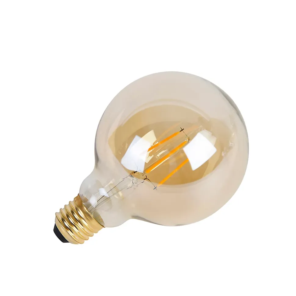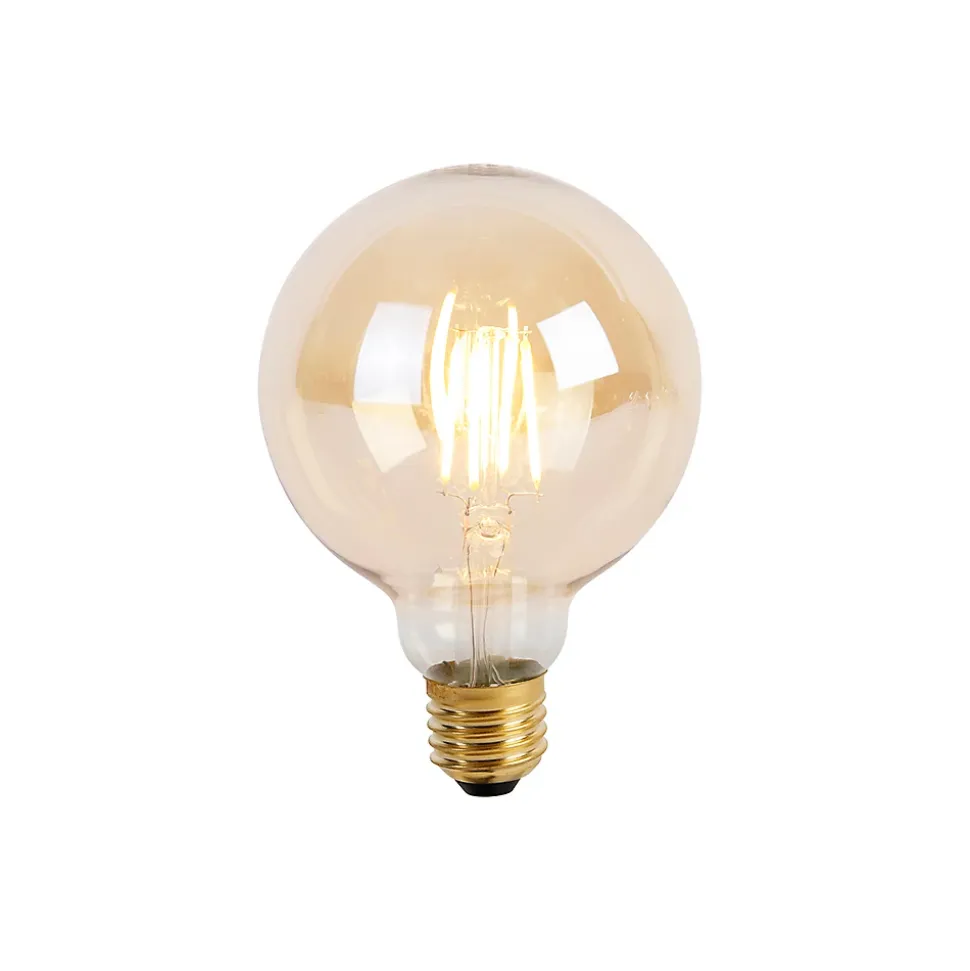 Cette ampoule E27 est un véritable atout pour l’ambiance de votre intérieur. Le verre doré de cette ampoule lui confère un aspect unique. Impossible de la manquer : elle mesure 9,5 cm de diamètre et 13,5 cm de hauteur. Sa puissance est de 5 watts et elle délivre 530 lumens. Cette ampoule a une durée de vie moyenne de 25 000 heures de combustion et émet une lumière blanc extra chaud de 2 200 kelvins. Elle est dimmable en 3 niveaux, ce qui permet de passer de 100 % à 60 %, puis à 30 % de luminosité. Vous pouvez ainsi choisir l’intensité lumineuse qui vous convient. Cette ampoule E27 est le choix idéal !