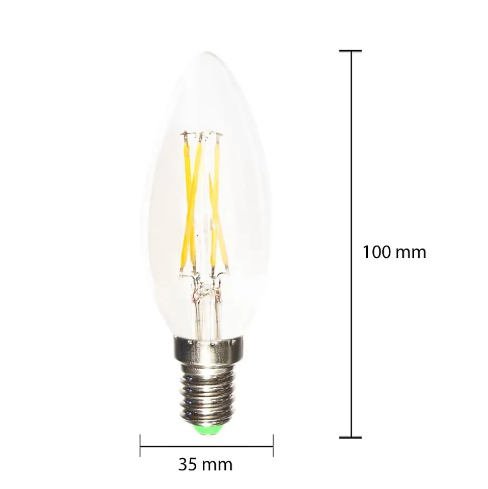 - Avec une puissance de 6W, notre Ampoule LED E14 Filament 6W 220V C35 COB 360° présente un bel éclairage de 600 lumens.