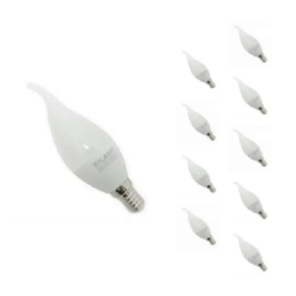 Ce pack de 10 ampoules LED E14 flamme 8W est la solution parfaite pour renouveler l’éclairage de plusieurs luminaires tout en bénéficiant des avantages de la technologie LED : faible consommation, longévité et lumière de qualité.Spécifications du lot des ampoules flamme LED 8W Ø38mmChaque ampoule LED flamme de ce pack de 10 offre une lumière efficace et fiable :Consommation : 8W, pour un rendu équivalent à 64W halogèneType de culot : E14 – courant dans les petites lampes et appliquesForme : flamme décorative, diamètre 38 mmLuminosité : 720 lm par ampoule, soit 90 lm/WAngle de diffusion : 300°, pour une couverture lumineuse uniformeCouleur d’éclairage : blanc chaud (2300K – 3500MK), blanc neutre (4000K – 5500K) ou blanc froid (6000K – 8000K)Dimensions : hauteur de 3,8 cmIndice de protection : IP20 (intérieur uniquement)Indice de rendu des couleurs (IRC) : Ra 80Durée de vie moyenne : 25 000 heuresConformité : CE et RoHSPourquoi choisir ce pack de 10 ampoules LED E14 flamme ?Ce pack de 10 est particulièrement adapté aux maisons, logements collectifs ou petits commerces. Il permet de remplacer plusieurs ampoules sans faire de compromis sur la qualité d’éclairage. Le format flamme apporte une touche décorative dans les lustres ou les appliques murales, tout en conservant une lumière puissante et agréable.Mise en place simple des ampoules flamme LED 8WDévissez les anciennes ampoules.Insérez les nouvelles dans les douilles E14.Aucun équipement supplémentaire n’est requis.Branchez et profitez instanta