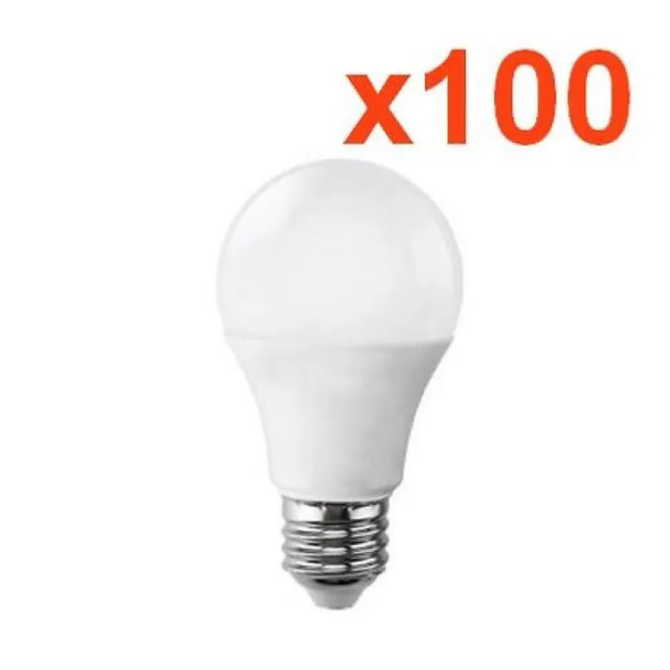 Ce pack de 100 ampoules LED E27 15W A65 rassemble puissance, durabilité et rapport qualité-prix idéal pour les professionnels ou particuliers équipant plusieurs pièces ou grands espaces.Détails essentiels du pack de 100 ampoules LED E27 15W A65Contenu : 100 ampoules LED E27 identiques, prêtes à l’emploi.Puissance unitaire : 15W, pour une consommation maîtrisée sur chaque unité.Luminosité par ampoule : 1350 lumens, assurant un éclairage intense et clair.Culot E27 standard : installation facile sur la plupart des luminaires.Angle d’éclairage large : 300°, pour une diffusion homogène dans les espaces.Couleurs d’éclairage : blanc chaud, blanc neutre et blanc froid, selon besoins.Non dimmables : fonctionnement stable sans variateur.Durée de vie estimée : environ 25 000 heures par ampoule.Usage intérieur : indice de protection IP20.Garantie fabricant : 2 ans, assurant sérénité et fiabilité.Pourquoi choisir ce pack de 100 ampoules LED E27 15W A65 ?Ce pack est idéal pour les installations à grande échelle : rénovation d’immeubles, bureaux, commerces, hôtels ou grands logements. Acheter en volume réduit le coût unitaire tout en garantissant une performance constante. C’est un choix intelligent pour les gestionnaires de bâtiments et les électriciens qui souhaitent allier économie et qualité d’éclairage.Installation pratique et conseils pour le pack d’ampoules LED E27 15WCoupez toujours l’alimentation avant de manipuler les ampoules.Vérifiez la compatibilité du luminaire avec un culot E27.Vissez chaque ampoule fermement mais sans forcer.</l