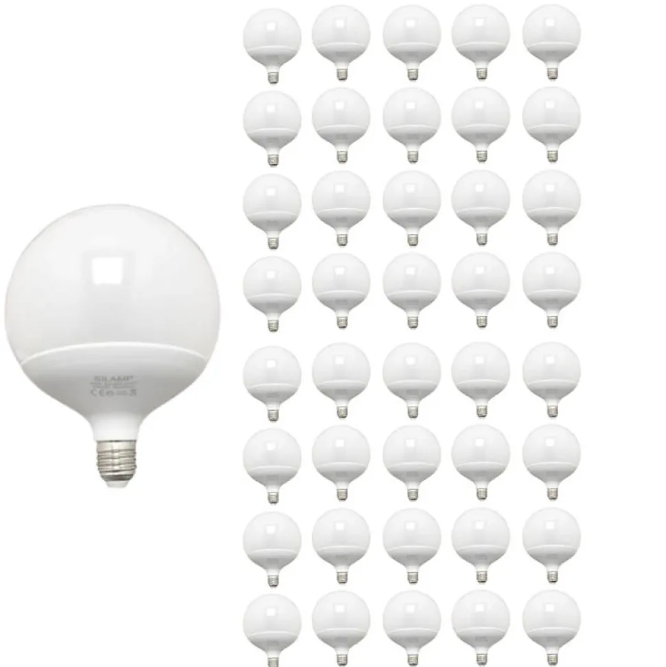 [Ampoule LED E27 25W 220V G140 300° Globe (Pack de 40)] Découvrez l’Ampoule LED E27 25W 220V G140 300° (Pack de 40), en forme de globe, idéale pour compléter un luminaire ayant besoin d’un éclairage puissant.[Une source lumineuse efficace] Blanc Chaud, Blanc Neutre ou Blanc Froid, vous avez l’opportunité de choisir, selon vos goûts, la couleur d’éclairage que vous souhaitez pour illuminer votre design intérieur. Cette ampoule émet, de façon homogène, une lumière intense sans agression pour les yeux avec ses 25W. Elle a un angle d’éclairage qui atteint les 300° et dégage un flux lumineux de 2250 lumens.[Un éclairage résistant] Son verre opale participe à un éclairage uniforme et harmonieux de votre espace de vie. L’ampoule globe 25W est fabriquée en aluminium et accompagnée d’une matière en plastique résistante à des températures comprises entre -10 °C et 45 °C. Son indice de protection IP20 signifie que son usage est destiné à des pièces intérieures. [Installation] L’installation de l’ampoule est très simple. Il vous suffit de la visser sur la douille prévue à cet effet. Son remplacement est tout aussi simple, il suffit de retirer l’ancienne ampoule et de visser la nouvelle à la place. [La qualité Silamp] Silamp s’engage pour vous fournir des produits de qualité et garantis 2 ans, ainsi qu’un service client à l’écoute et réactif.- [Ampoule LED E27 25W 220V G140 300° Globe (Pack de 40)] Découvrez l’Ampoule LED E27 25W 220V G140 300° (Pack de 40), en forme de globe, idéale pour compléter un luminaire ayant besoin d’un éclairage puissant.